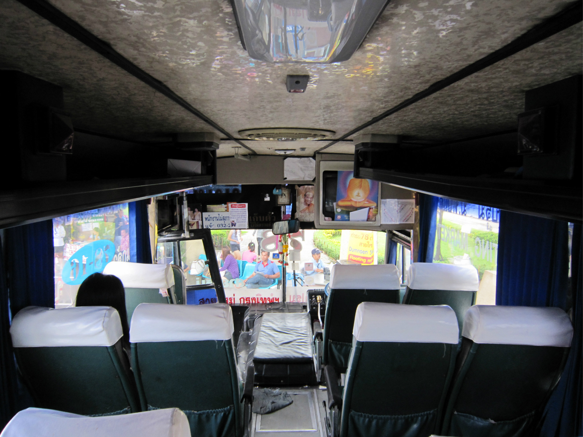 我们选择了等待。等啊等,等到东方泛红,6.15车终于来了。兴奋地上了车,又是无尽的等待,等到阳光普照,6.45,等售票员上车后,终于开车了。我在心里把自己骂了上千遍。但这1小时45分钟一班的公交车也太雷人了!不知道是泰国人时间观念差不按时刻表办事,还是这就是运营常态?