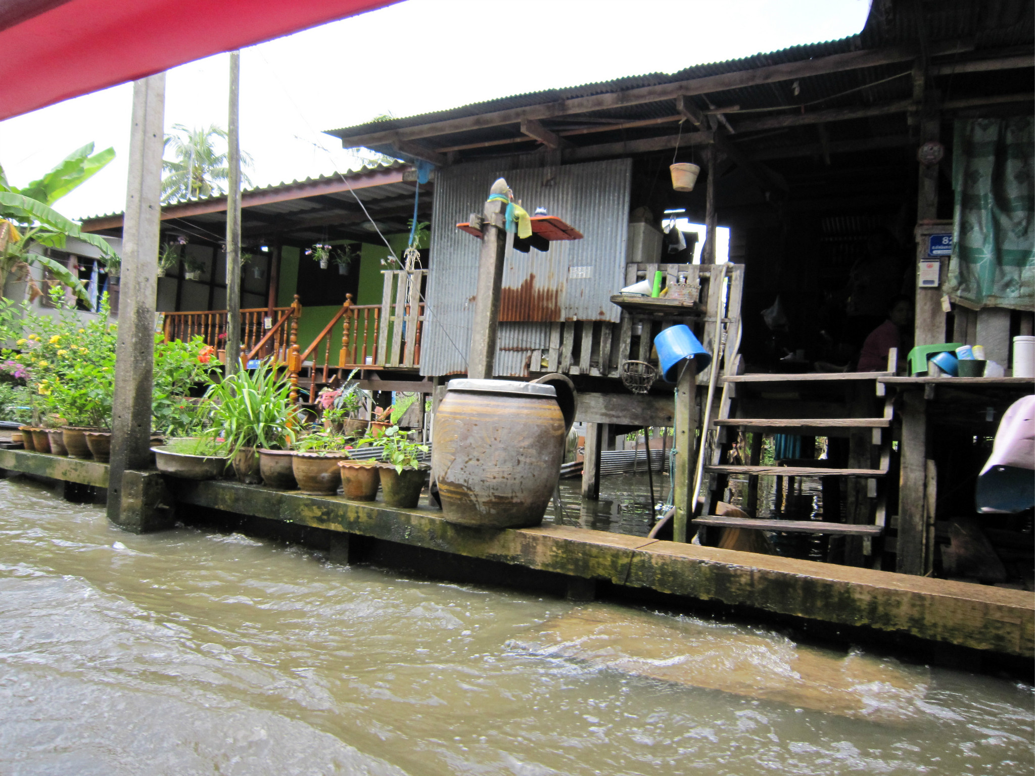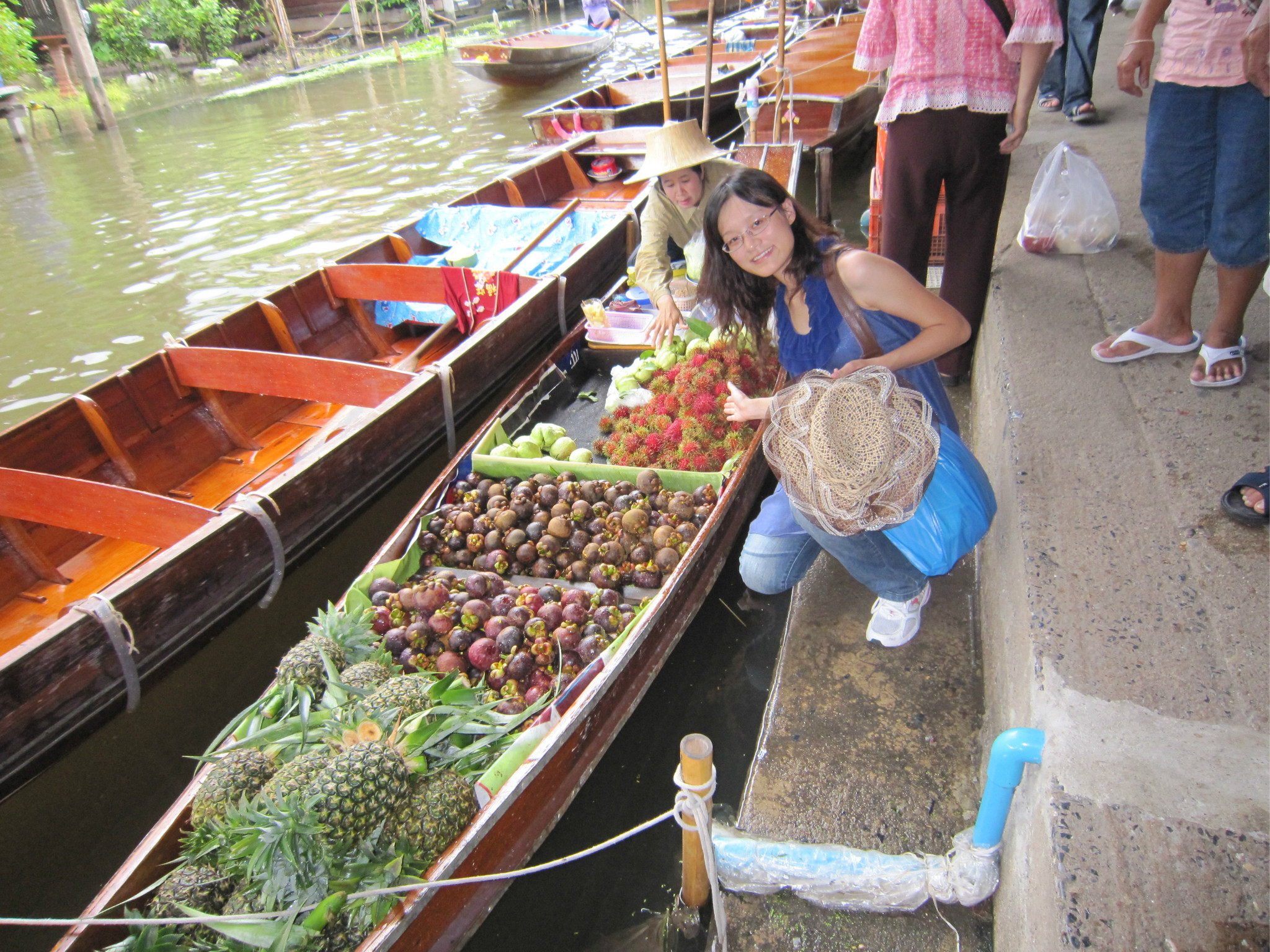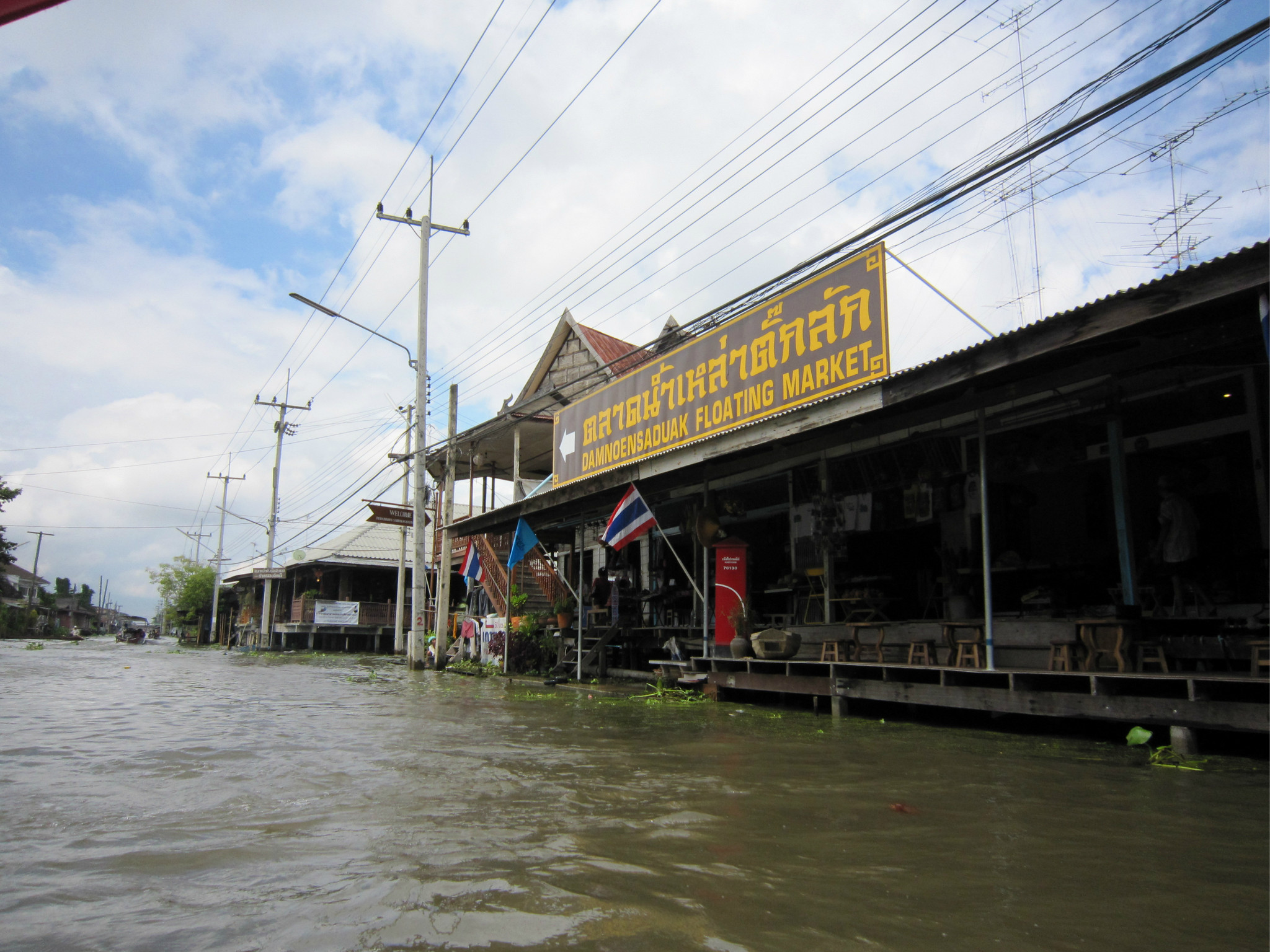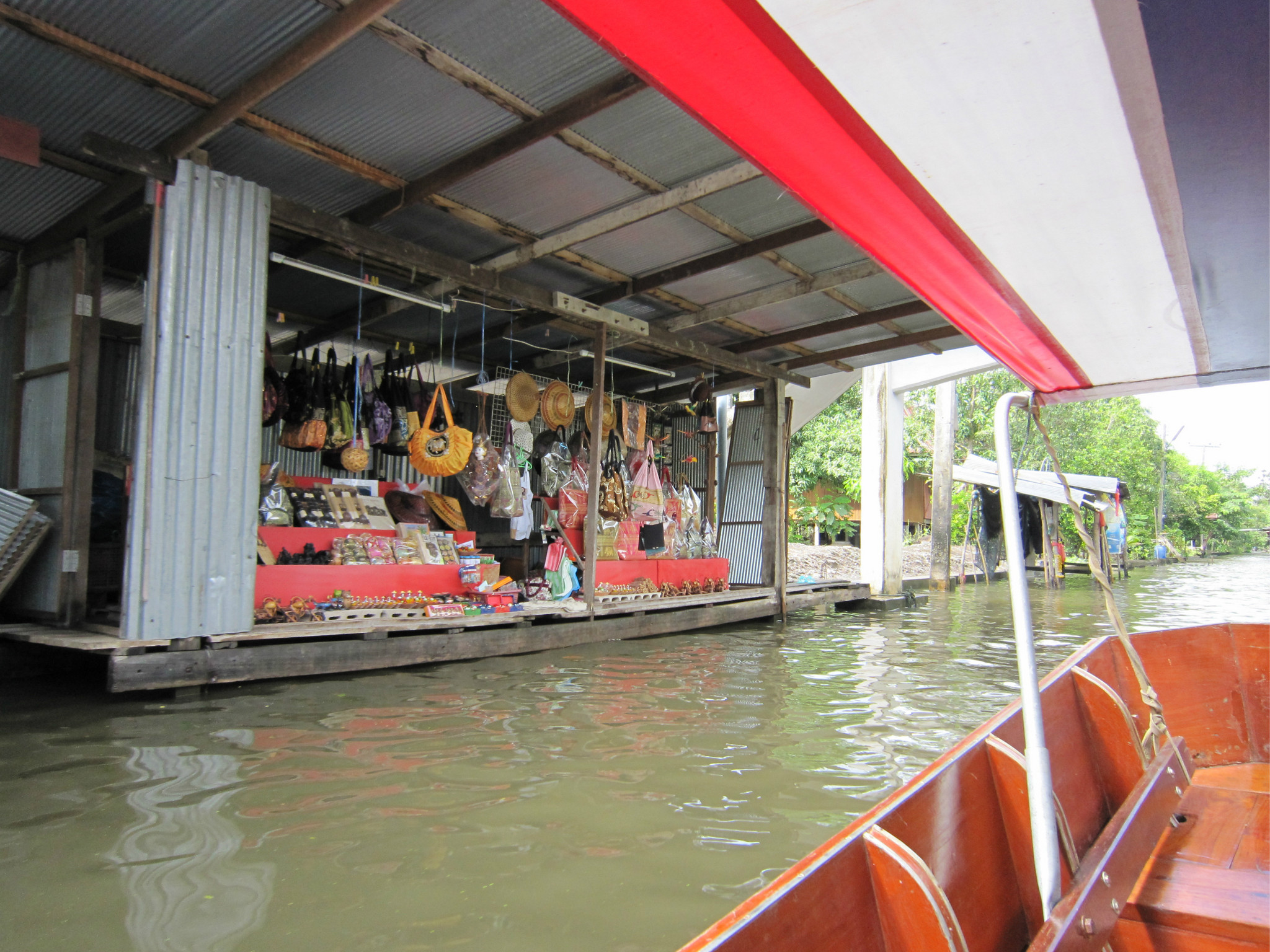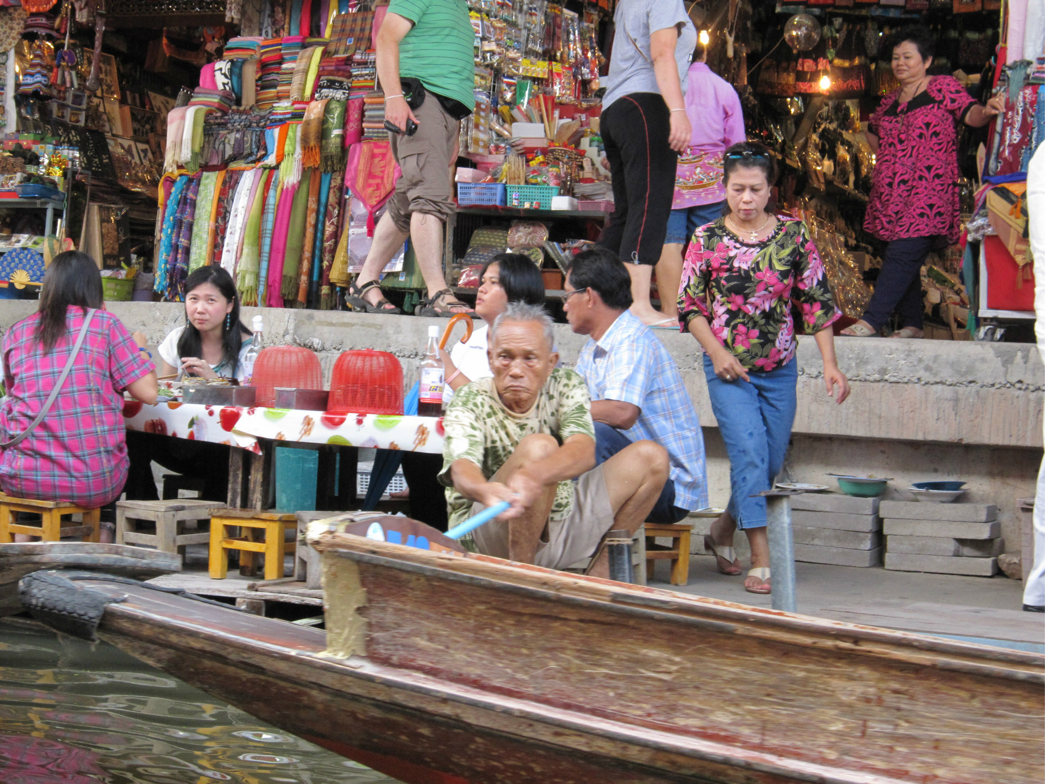 一个小时很快就过去了。我们跟船工说,我们不回到出发码头,就把我们放下,我们随便走走。并问他我们一会应该怎么找到车站去曼古。他的英语不好,但是多少明白了我们不想回去码头的意思,于是开船带我们到了一个水边店家那里,示意我们问他。店家英语不错,很热心地告诉我们应该怎么走。之后船工就把我们放下了。
