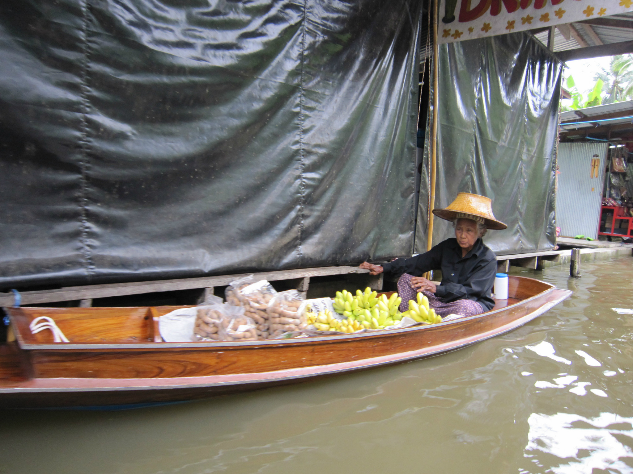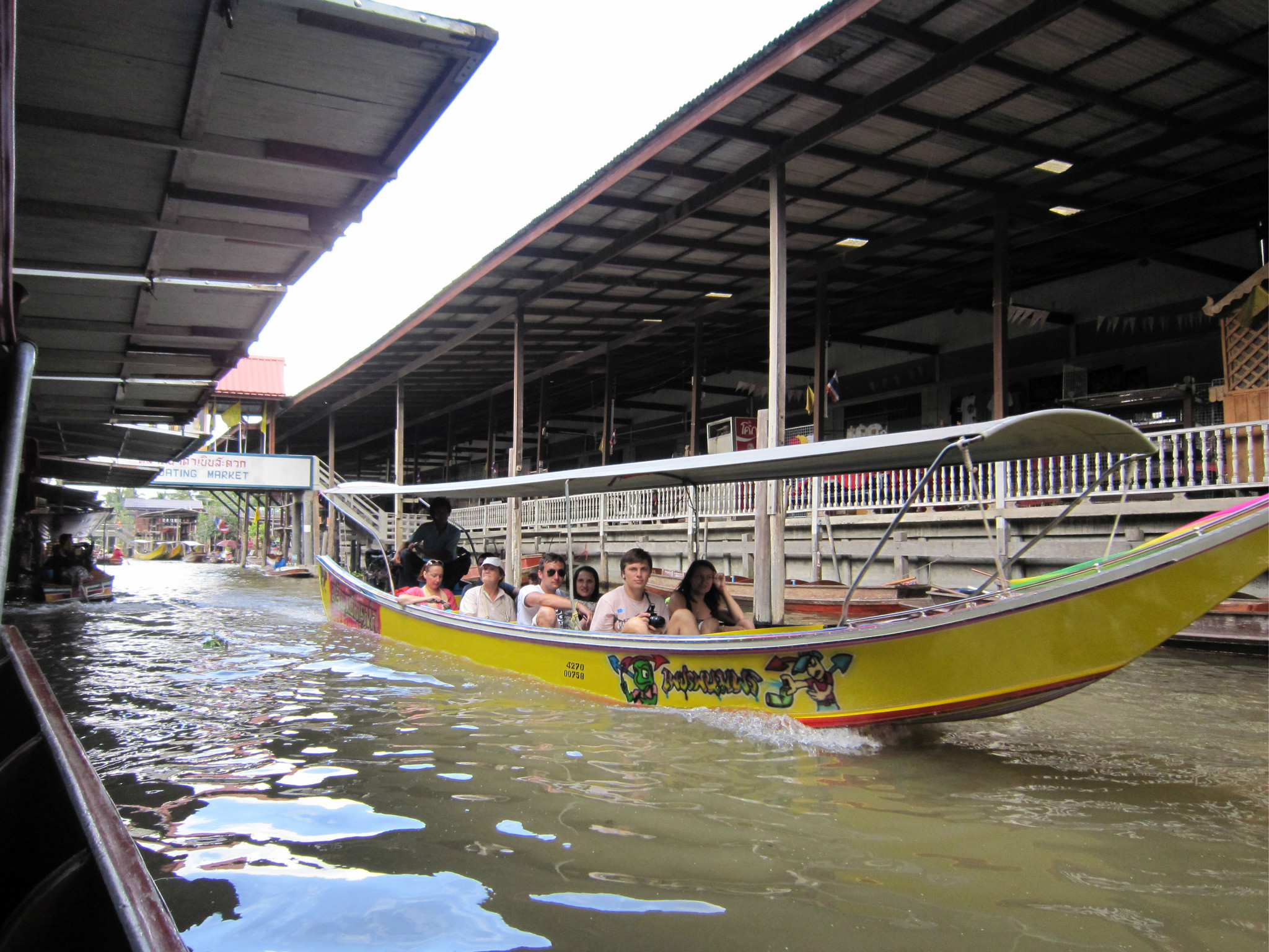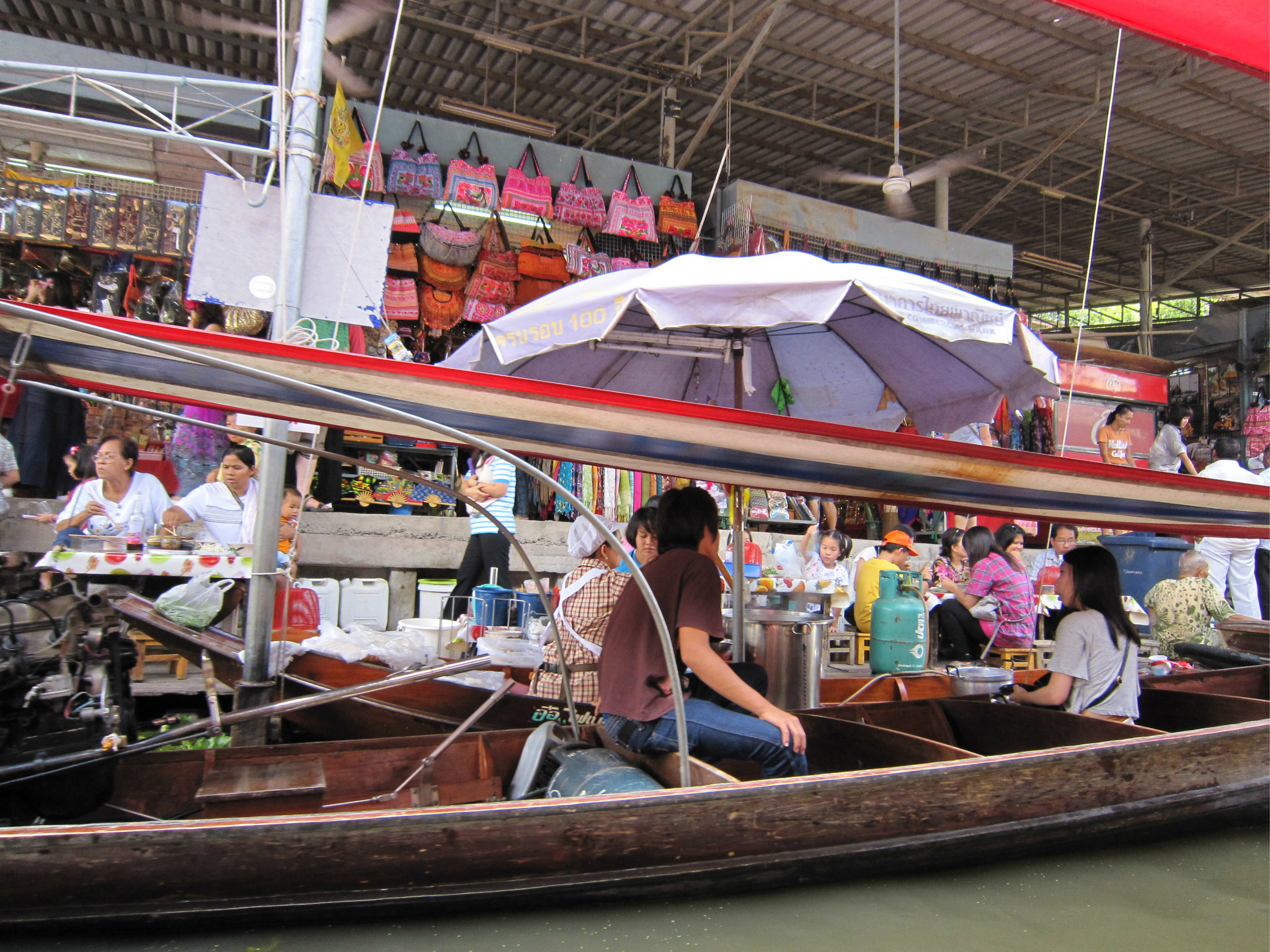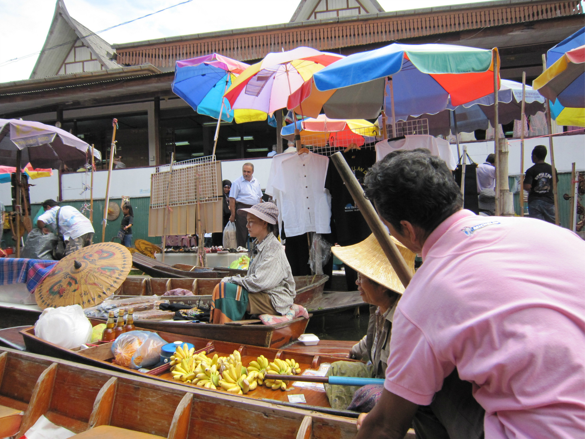 一个小时很快就过去了。我们跟船工说,我们不回到出发码头,就把我们放下,我们随便走走。并问他我们一会应该怎么找到车站去曼古。他的英语不好,但是多少明白了我们不想回去码头的意思,于是开船带我们到了一个水边店家那里,示意我们问他。店家英语不错,很热心地告诉我们应该怎么走。之后船工就把我们放下了。
