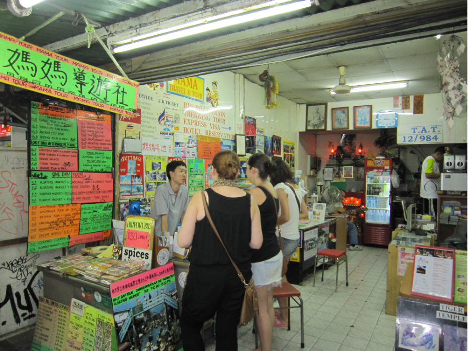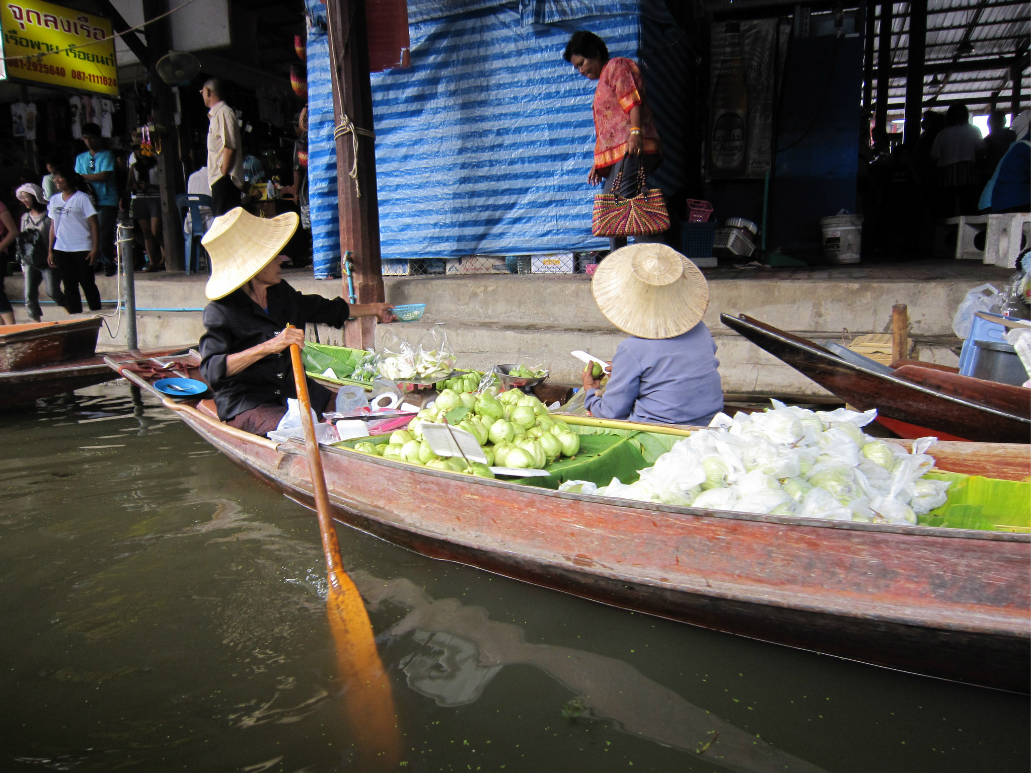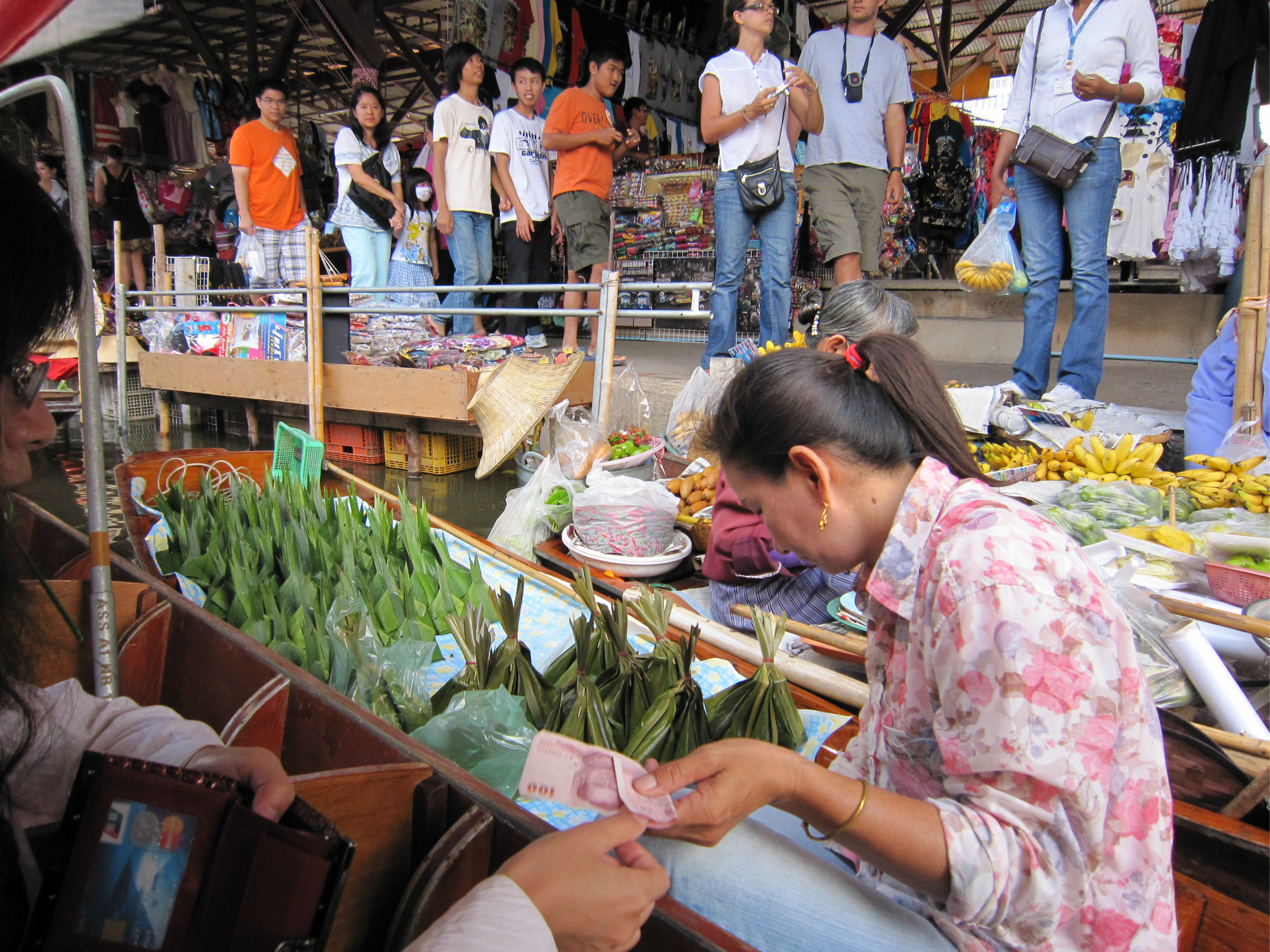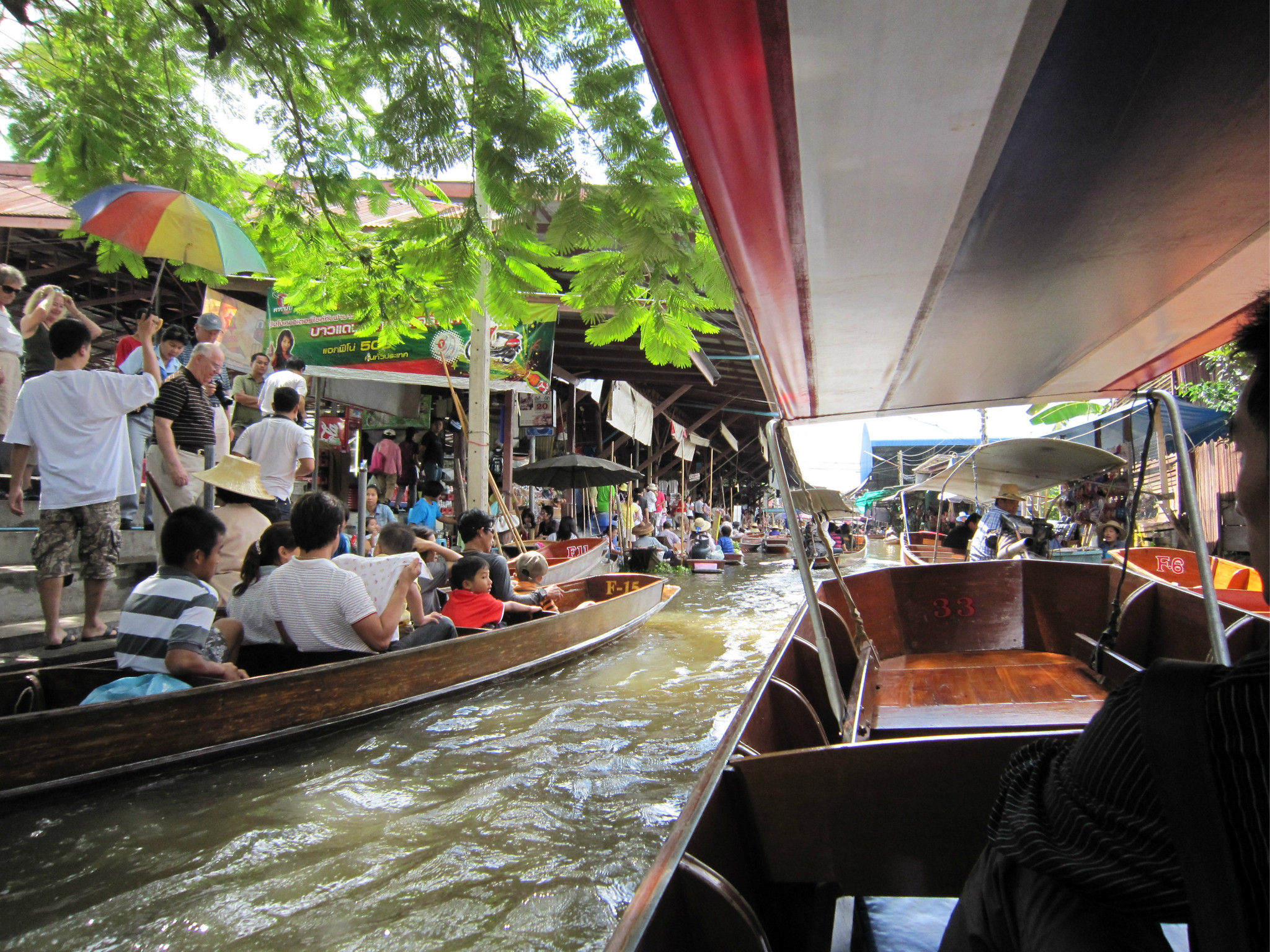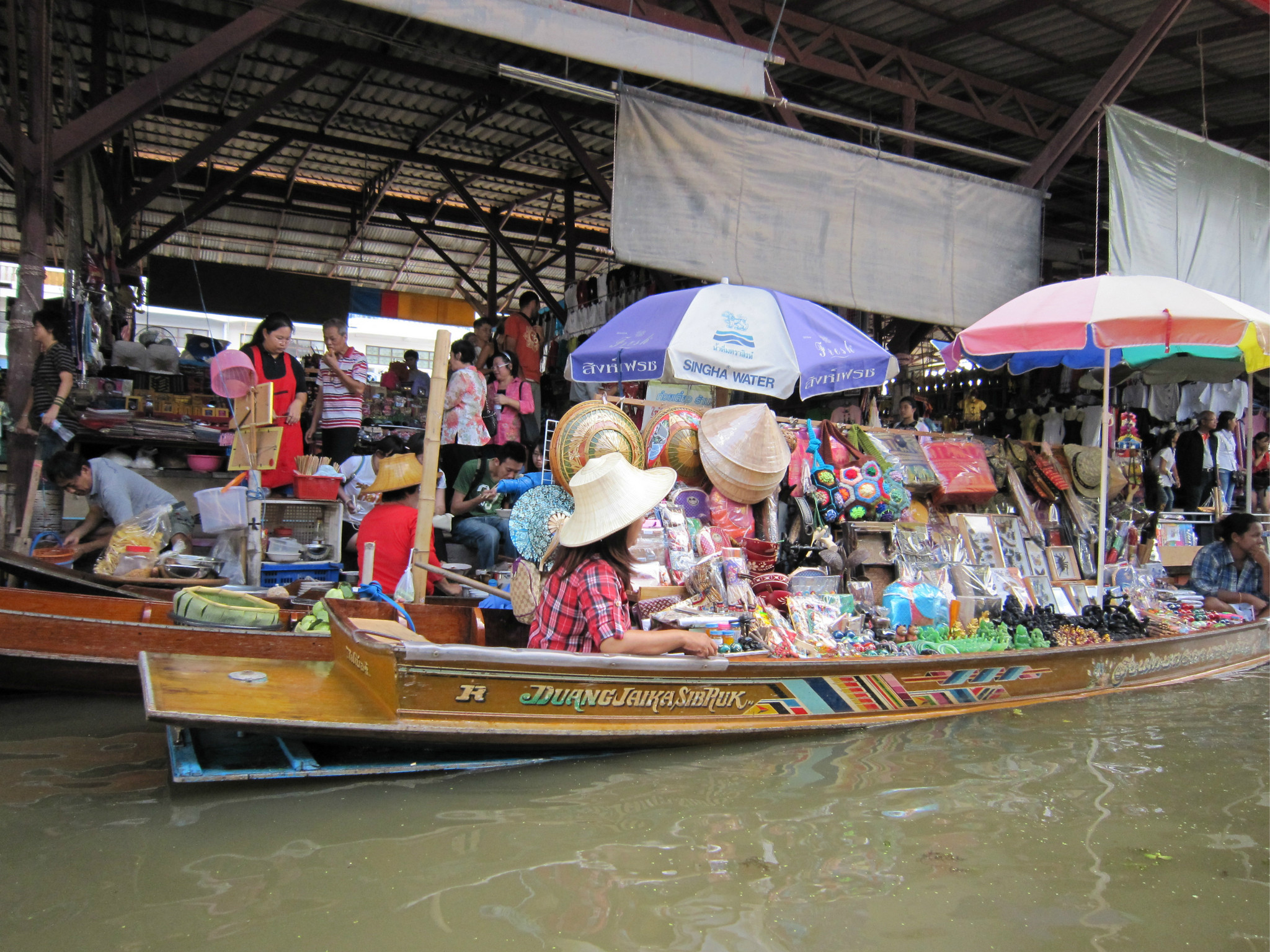 一个小时很快就过去了。我们跟船工说,我们不回到出发码头,就把我们放下,我们随便走走。并问他我们一会应该怎么找到车站去曼古。他的英语不好,但是多少明白了我们不想回去码头的意思,于是开船带我们到了一个水边店家那里,示意我们问他。店家英语不错,很热心地告诉我们应该怎么走。之后船工就把我们放下了。