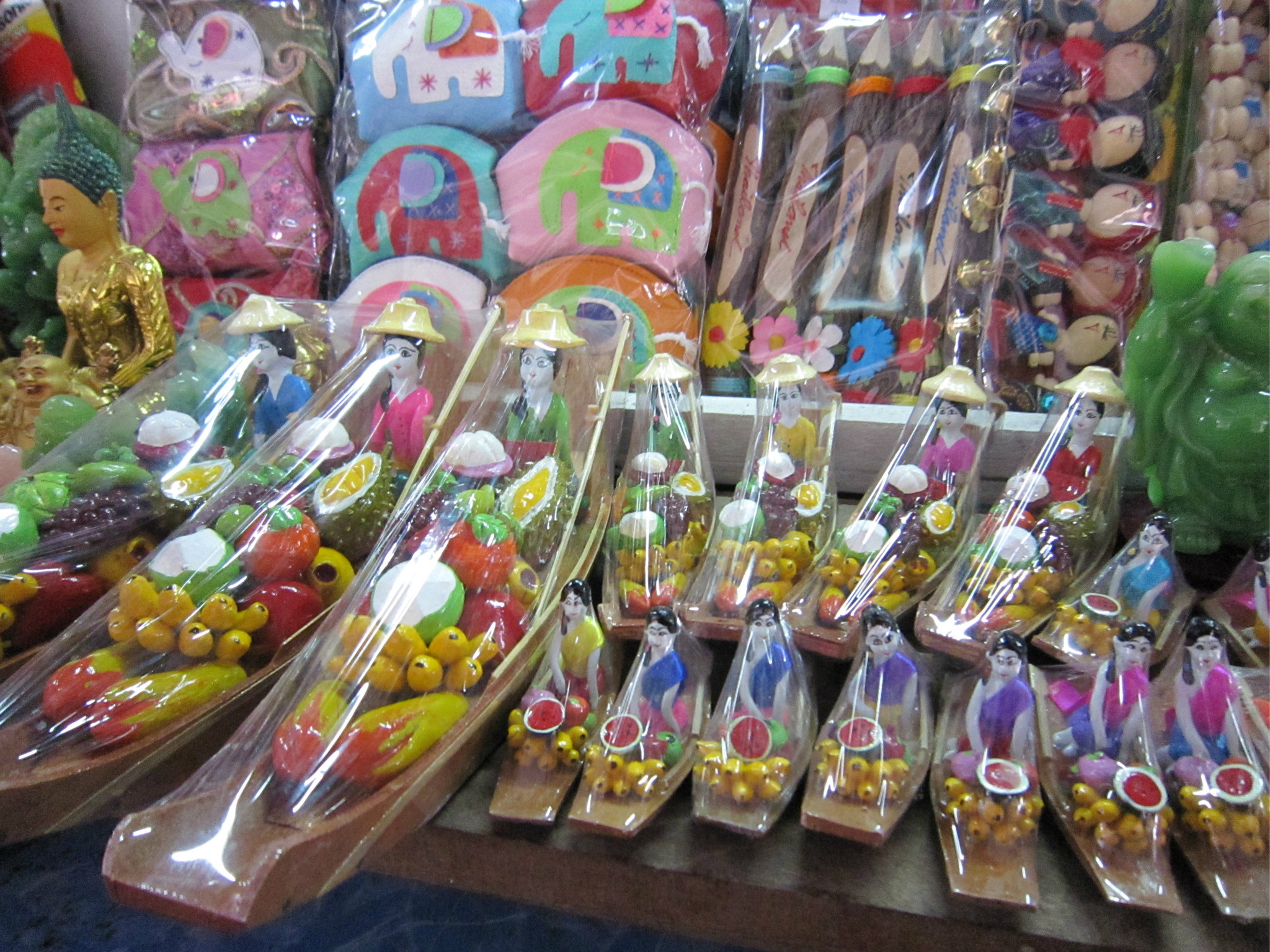 好吧,我们开始拉动泰国经济增长啦!水面两边支起的店铺卖各式各样的摆设的小物什。