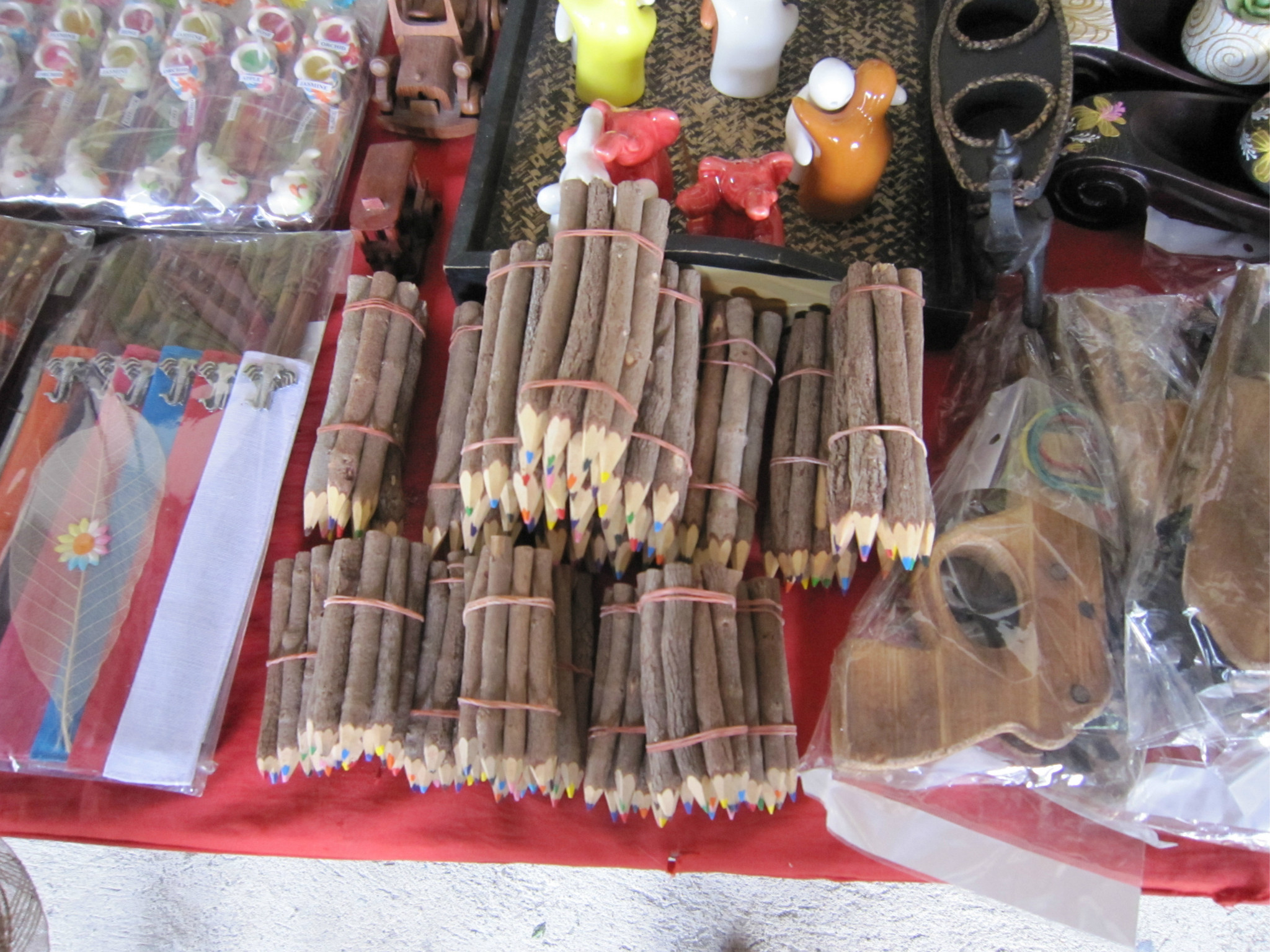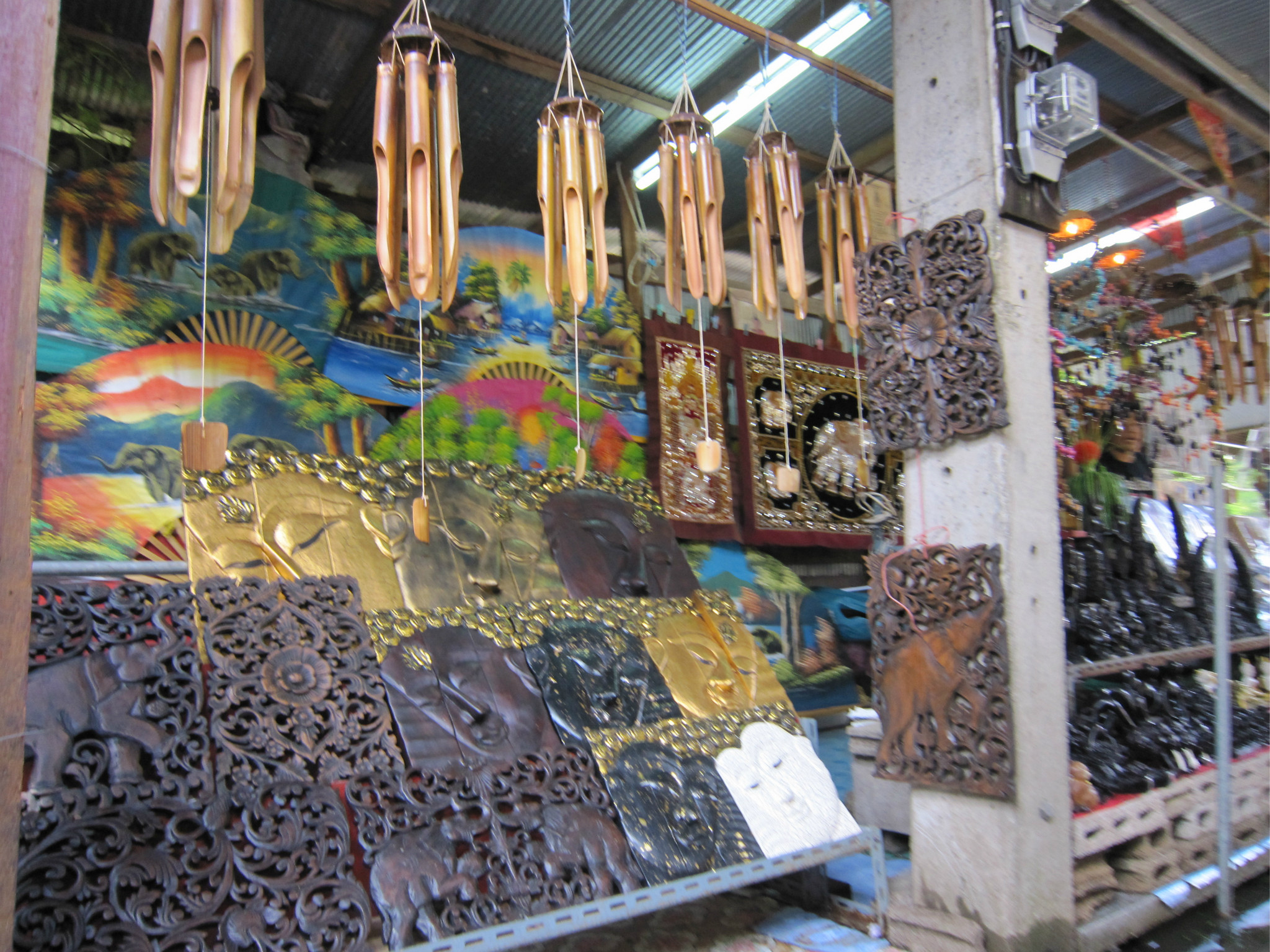 卖得不便宜,但是只有这里有。后来我们去恰图恰周末市场 都没有看到。〔正是老公英明地说咱们买点有这个地方特色的东西吧,别的东西在恰图恰和清迈应该有的比较普通的东西就先别买了,不然还得背着。〕我们买了一艘大的A4纸左右那么长150〔觉得买贵了〕,后来又在一个很可爱的女摊主手上买了5只小的,共90泰铢。绝不肯再便宜。我觉得这个价格也差不多。