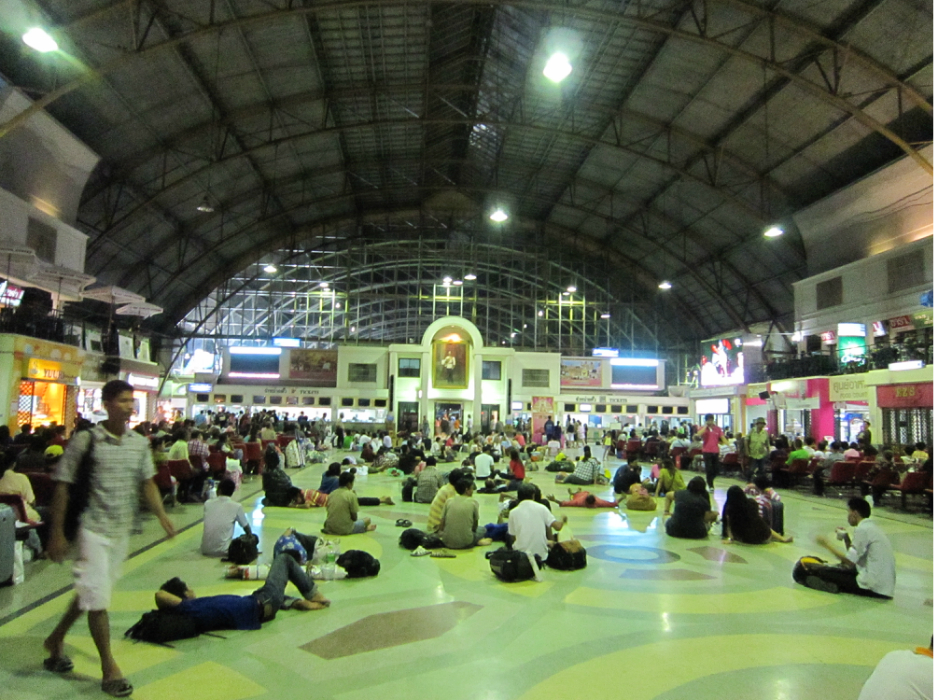 华南蓬火车站就是一个大篷形状的。让我想起了哈利波特里 的火车站。而且乘客都席地而坐,更有胜者席地而躺。