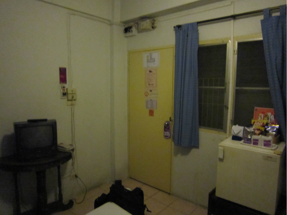 考山路 上住宿整体偏贵,我们打算凑合活一宿。定了一个700B的,这700B的SAWADEE INN ,跟普吉岛 600B的LAMI INN可没法比,看图吧,都是眼泪!