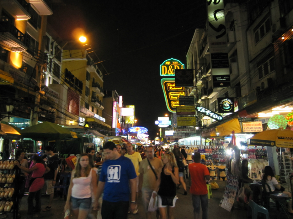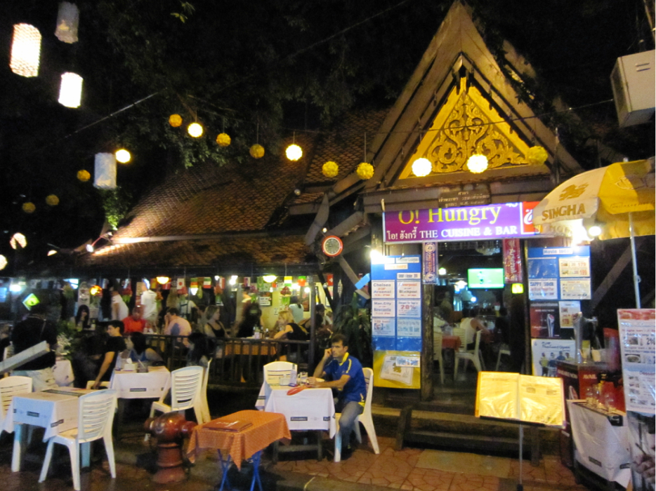 接下来我们决定去已经预定好的在考山路 上的酒店了。出了火车站有很多拉客的黑车,要价200B,我们知道华南蓬离考山路 并没那么远,正常打车的话100B足够了,于是跟他们讲价但是讲不下来。这是很多TUTU车主围上来说150B就走,我们是有点不放心这般这么殷勤的人,没敢上他们车。我们往远处走了走,企图到旁边的大马路上打车,但是所有出租车都不愿意去,不知道为什么。费了好大的劲,我们才拦到一辆,80B。真不容易!