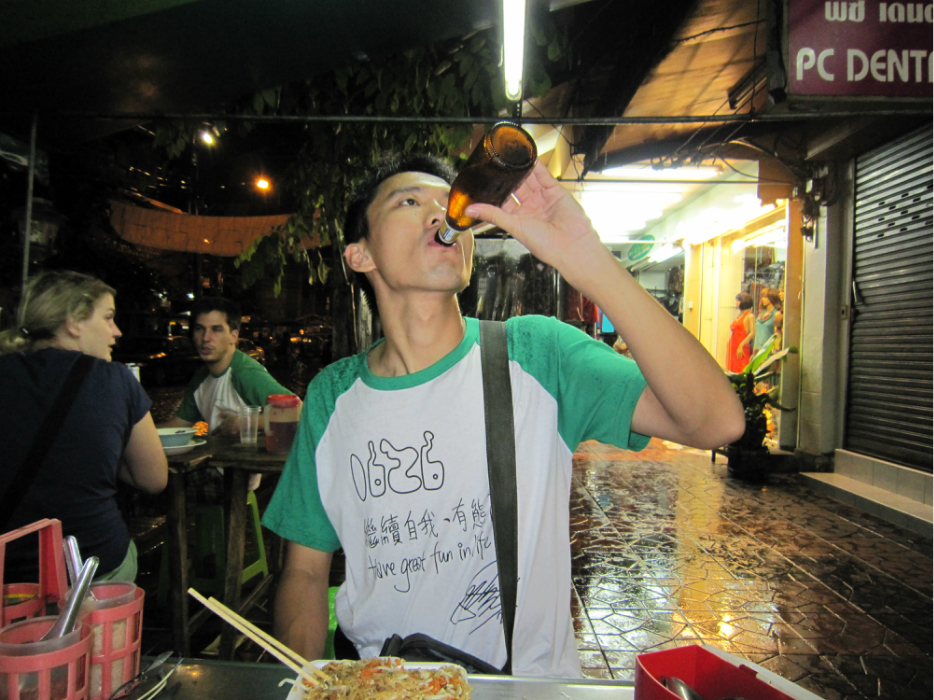 东西吧的确挺便宜,但也没有那么便宜。我们每人买了一件99铢的泰国风情的T恤。还可以,第二天穿着他们在大皇宫和大城拍了无数照片。