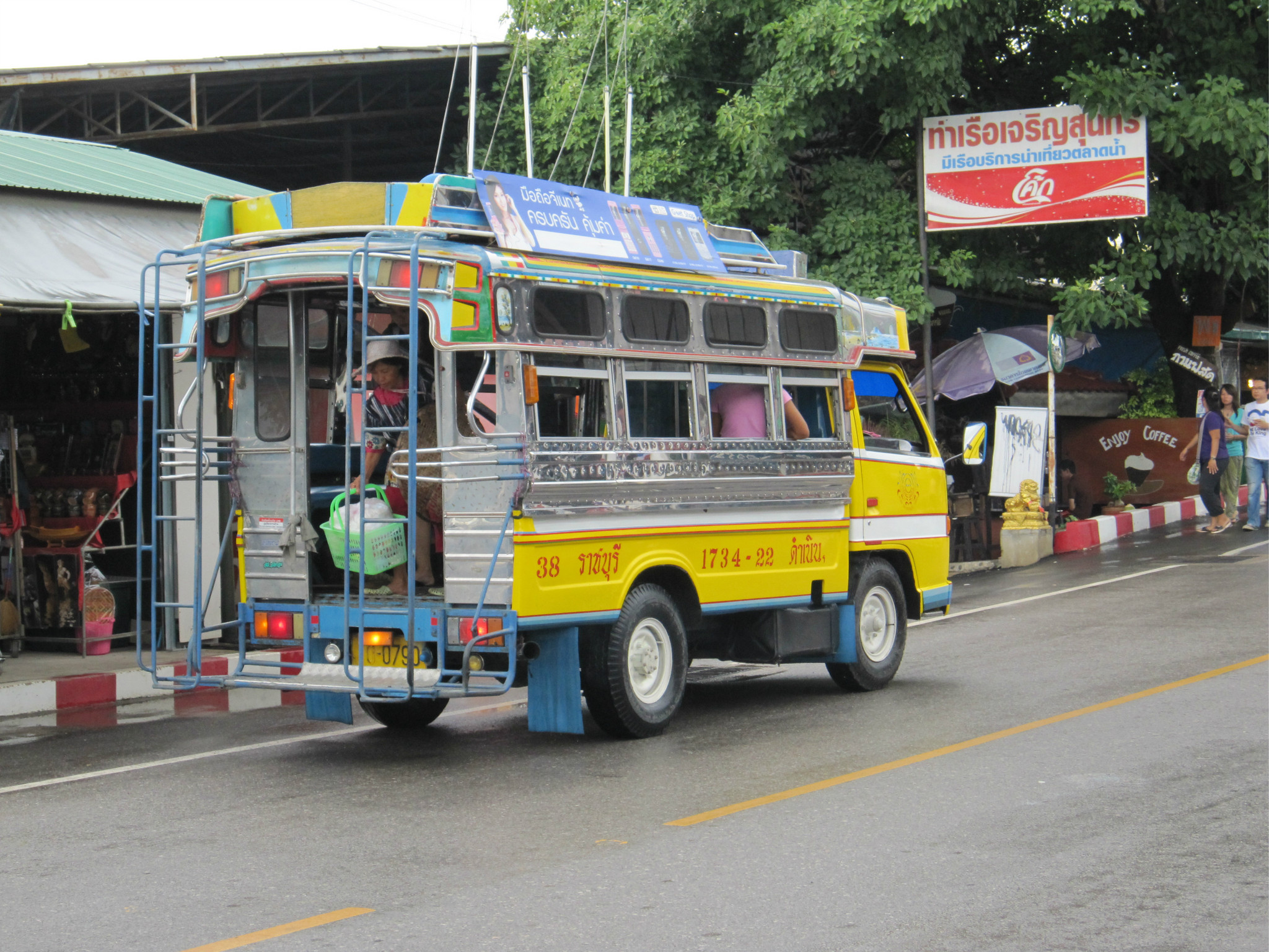 巴士在市区行驶的一路,就一个感觉:曼古好破啊!而且道路两旁都是乱拉的电线,毫无规划可言,跟八十年代末的中国 小镇一样。汽车南站也破败。这里咨询窗口的工作人员也都不会英语。我们好不容易逮到一个勉强能用英语的保安一般的人,让他带我们去寄存了包,还把我们带到乘车地点〔车票是开车后由售票员卖的〕,末了给了他20铢小费。会英语的应该受到鼓励。
