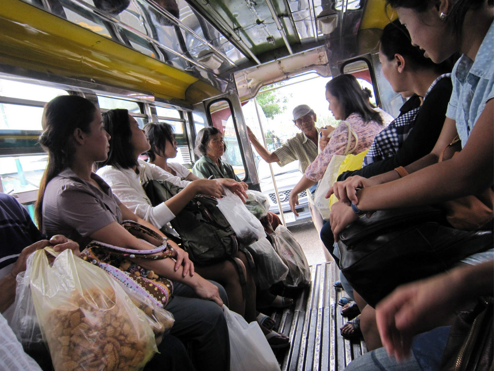 车来了就问我们想去车站坐车回曼古,是坐这个方向吗?售票员是一个看着70开外的阿公,跟他语言不通。上车后跟很多人确认应该在哪里下车。大家都很热心。可惜不知是语言还是不怎么通,还是他们很少去曼古不知道那条线路,总之是越问越乱。