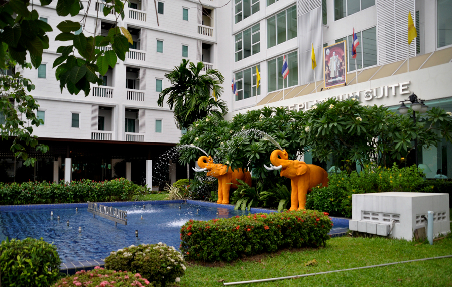 @第一天到了以后入住的酒店,外面有2个可爱的小象喷泉