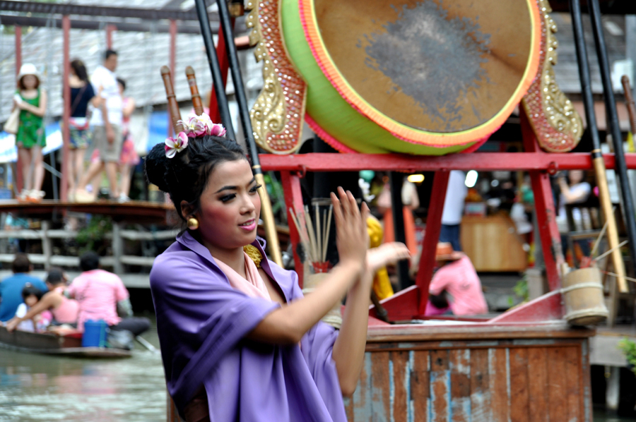@水上 市场内部的一个小节目表演。