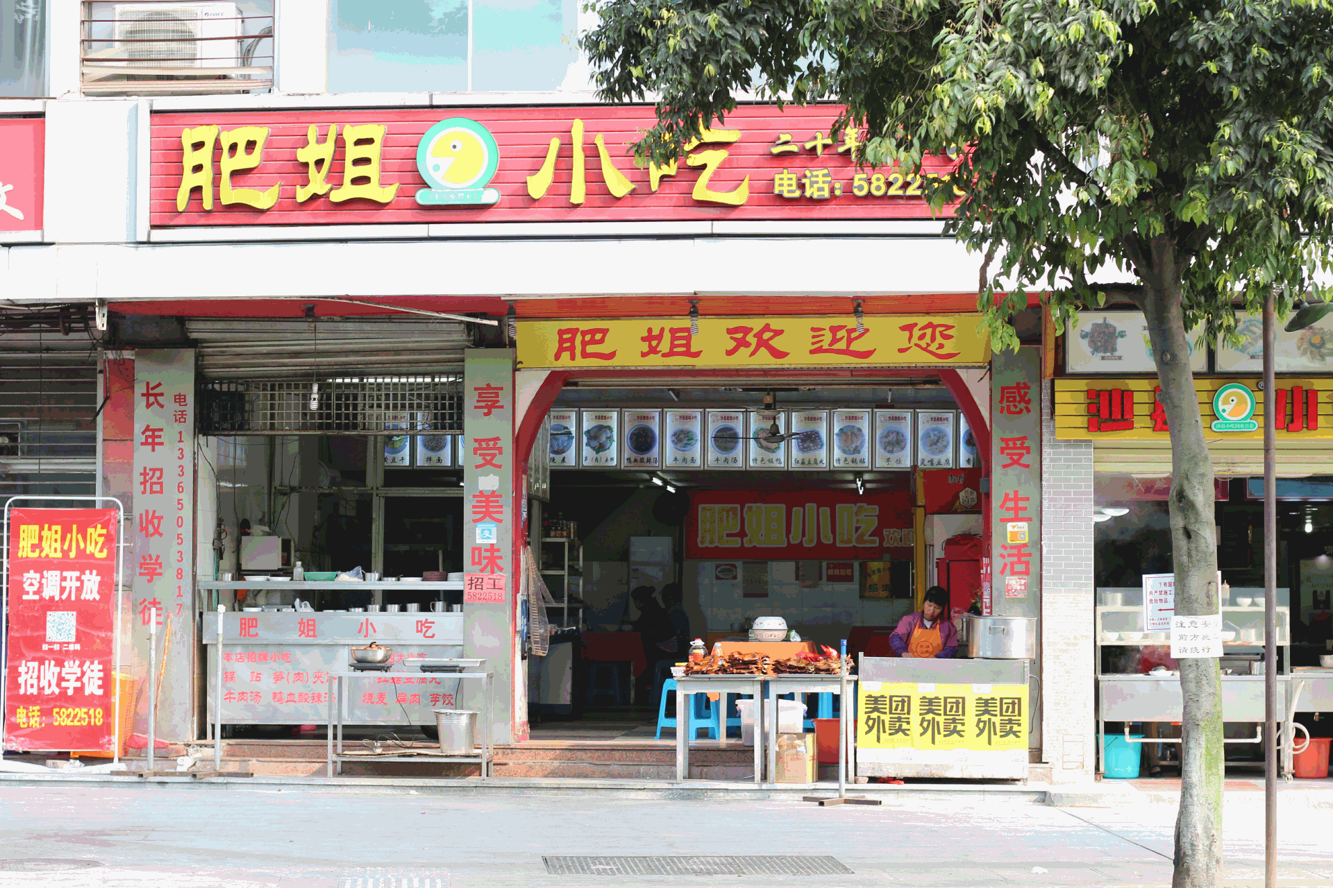 过索桥后直面就能看到的肥姐小吃店,肥姐就是老板本人。这家店是当地人吃的较多的一家,种类丰富,适合图方便的小伙伴,除了必点的牛肉汤、金包银,还有一些其他炸物。