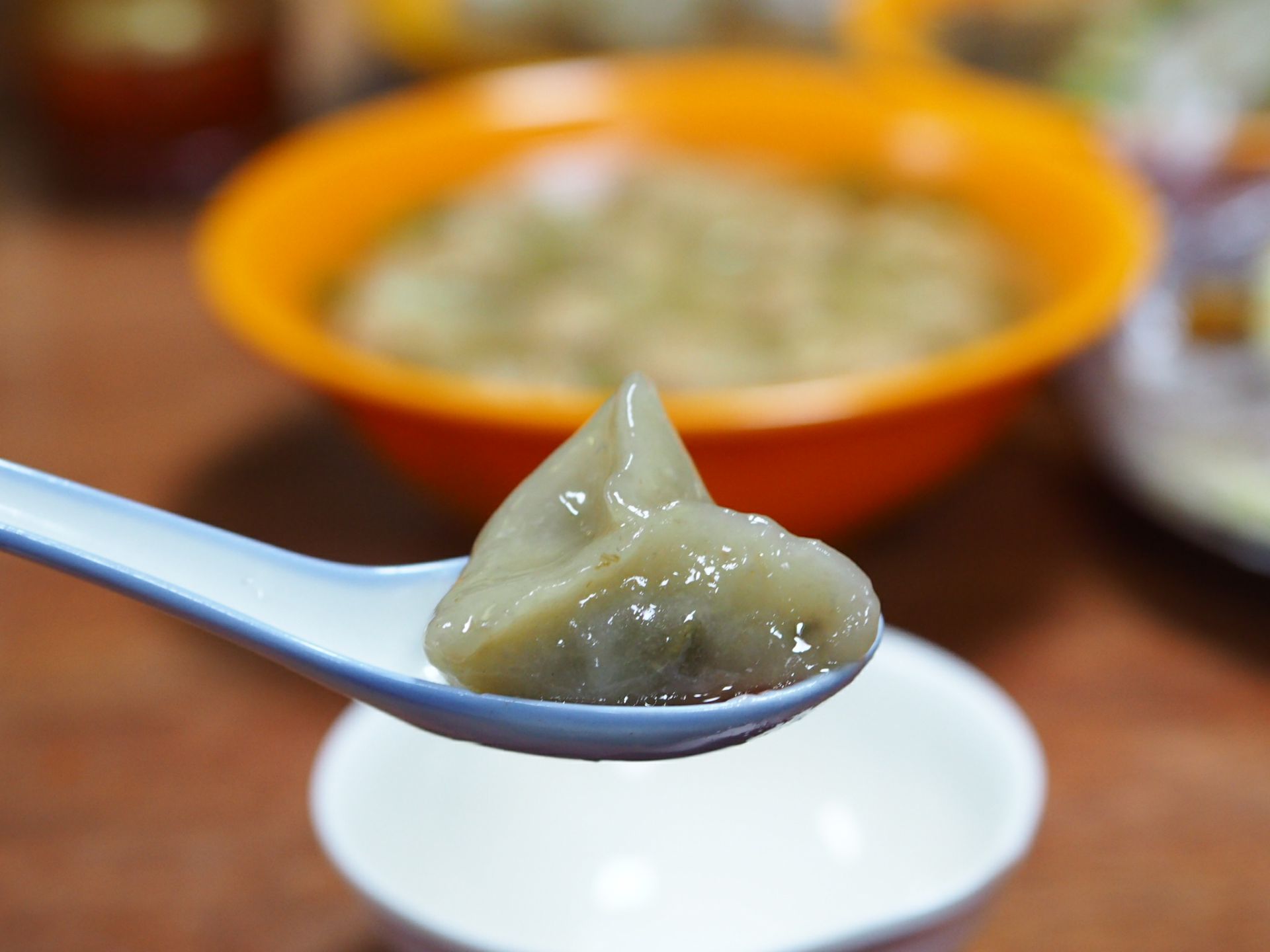 【芋饺】是店铺主打,饺皮由芋子和着糯米粉制作而成,本身无味,但非常软弹。再包入笋、菜和肉末,一份只要十块钱。唯一的缺点就是太滑,真的是非常考验筷子功夫了。他家的馅料口味对来我说较淡,需要额外沾调料吃。
