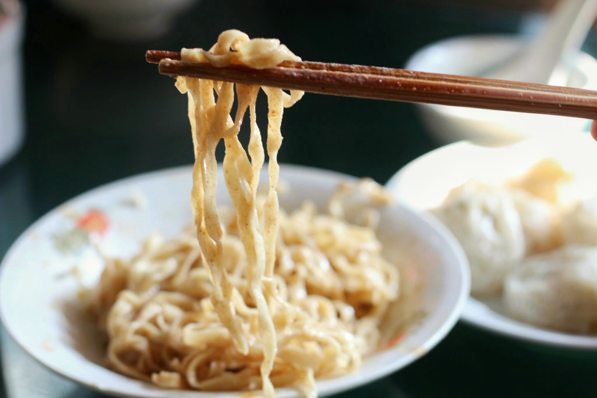 面条不是连锁店那种挂面,而是选用比较筋道的扁面。没有雪菜也没有酸豆角,只有少量的葱碎,一定要记得及时把花生酱拌匀,不然很容易就会陀成一块哦~