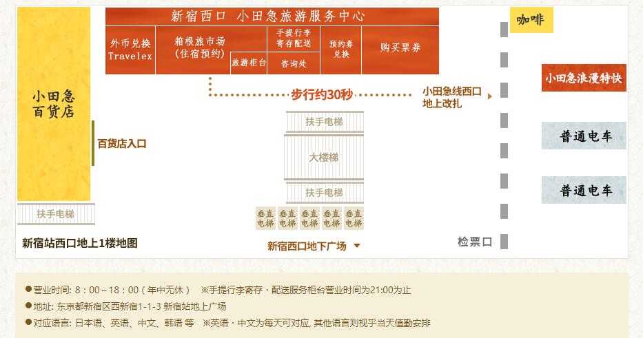 *购票地点:新宿地铁站,小田急百货出口,小田急旅游服务中心,位置图及详细介绍请参考链接。