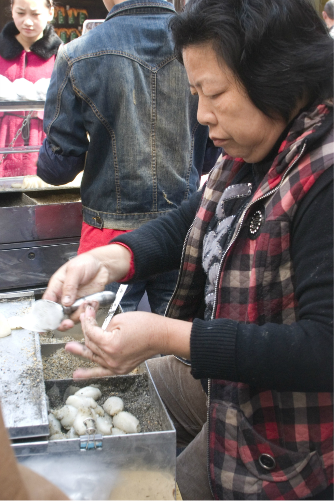 老板娘在现场做麻糍,动作相当娴熟,速度非常非常快。
