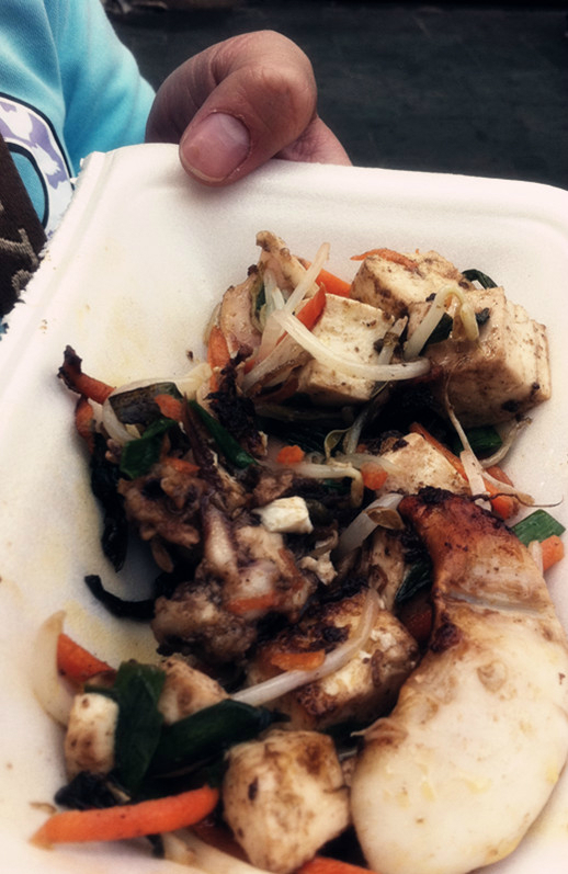 起司马铃薯,说是台北的特色。买了一个非常好吃!土豆和起司在一起,味道好。