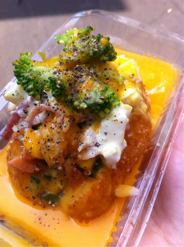 老板是一个非常可爱的广西女孩。起司马铃薯里面的配料也很多,黄瓜、玉米粒、培根、西兰花。。。
