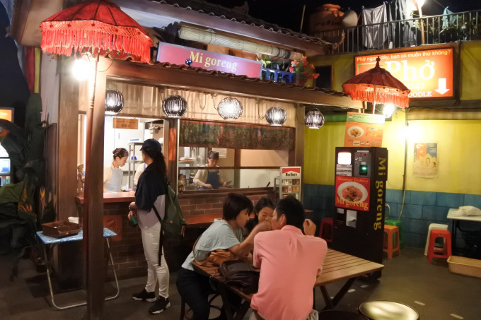 里面的灯光有些暗,营造出一种晚上在街边大排档边逛边吃的氛围