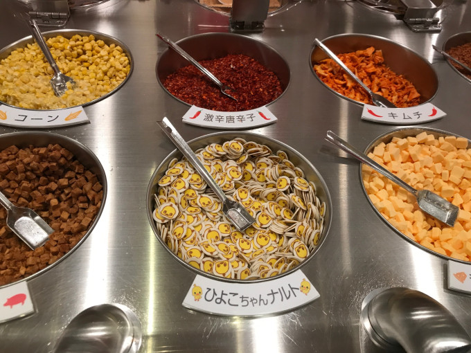 接着来到配料区。12种配料可选,可以选4种配料。