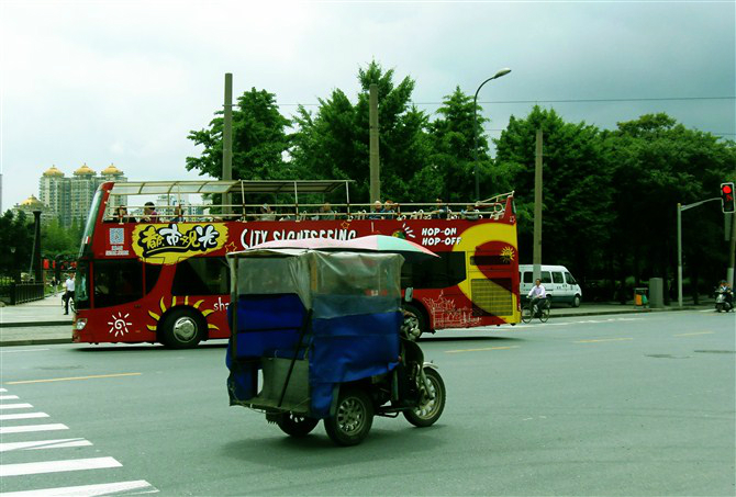 浏览的路线基本上跟设计的符合,吃上了很有名的南翔小笼包,但是价钱跟味道真 的很坑爹,推荐上海 生煎包,真的很好吃,超级多肉,但是吃起来又不会觉得腻,底下的面皮被煎得黄黄的,咬起来脆脆的,卖早餐的阿姨人真的超nice,偶尔从嘴里跑出来的吴侬软语听着真心觉得可爱,外滩真的很美丽,白天有白天的震撼,夜晚有不一样的华丽,上海 市政府门口的降国旗值得一看,因为兵哥哥都超帅的,如果是情侣的话推荐去甜爱路,有很多关于爱情的句子呈现在白色的墙壁上,有大学情节的必须要去复旦大学,坐在光华楼前的大草坪上,吹风、看天空、欣赏学生排练,然后装成学生去食堂吃个饭,经提醒,中间还去了新天地,灯红酒绿的地方,不是我的菜,所以不加以点评,上海 有很多免费的公厕,而且有很明显的指示牌,而且会很干净,田子坊 有很多超有个性的店铺,因为去的太早,很多店铺没有开门,但是在窗户外面看都觉得心痒痒,但是为什么这个物质横流的大都市会给我老气横秋的感觉?