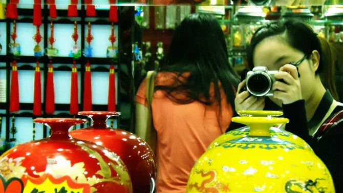 同伴各种买纪念品,带回去送给亲朋好友,本人兜里木有几个闲钱,于是很淡定··