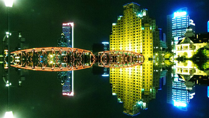 从奇怪的铁饼建筑左边踱步至此,看到这条不知名的桥,当时有人普及来着,但是名字忘了·