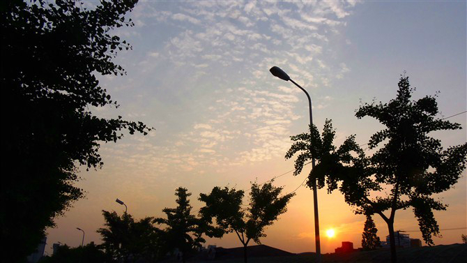 遇上夕阳西 下,很美丽呢··