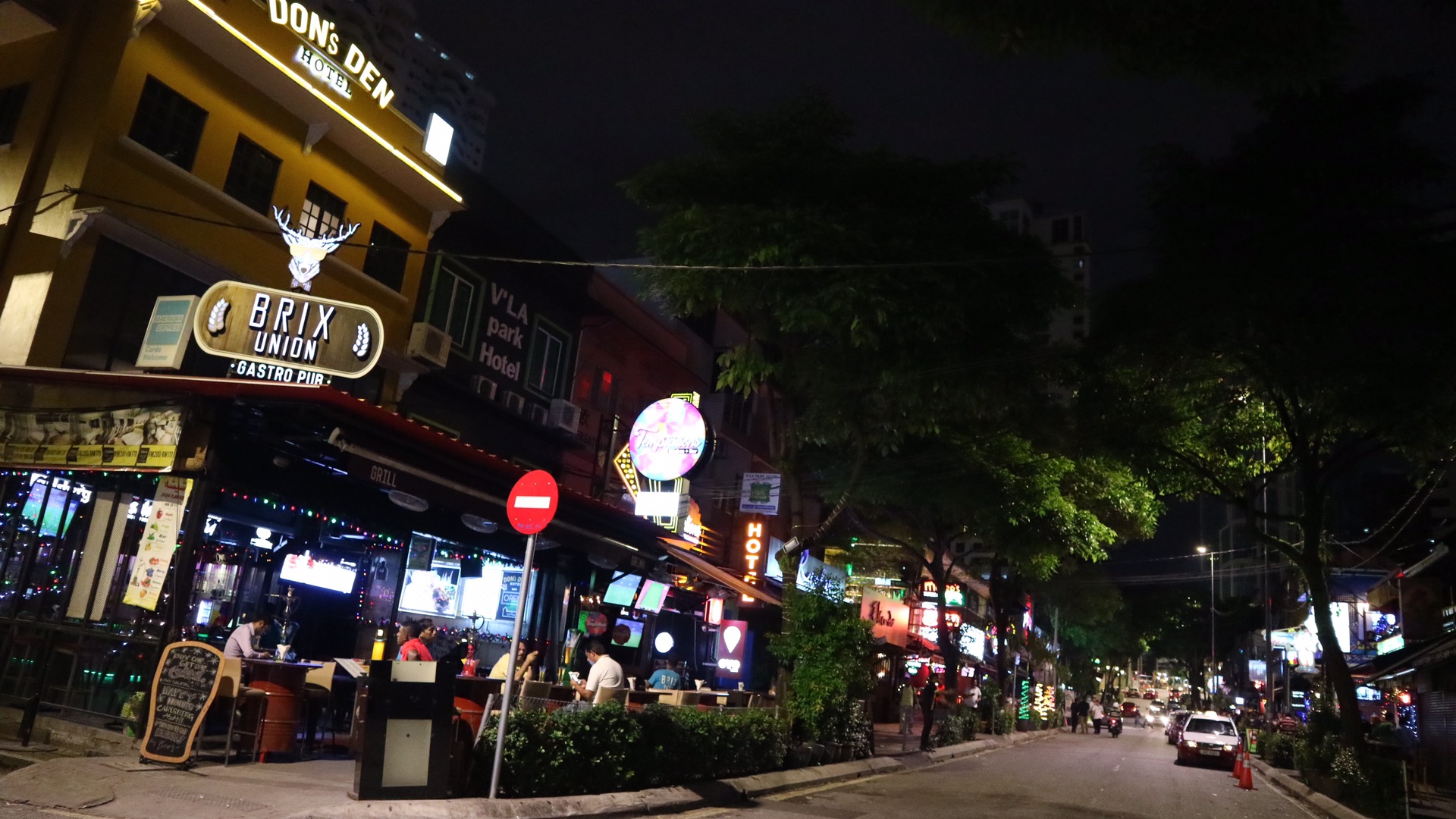 阿罗街附近的酒吧一条街,两人走过喧嚣处,就当我们在这里嗨过啦