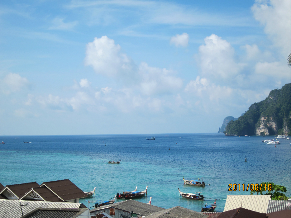白天酒店拍到的景色,phiphi hotel,优点离码头很近,给我们的是海景房,缺点没电梯天天爬楼,四楼!忘了带东西真心的不愿再上去。
