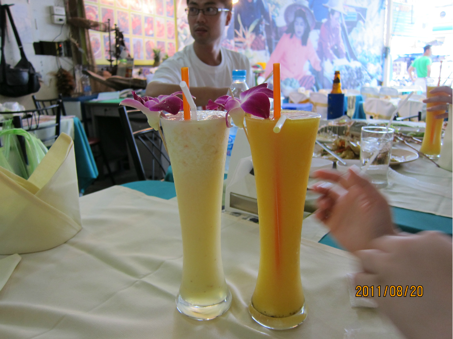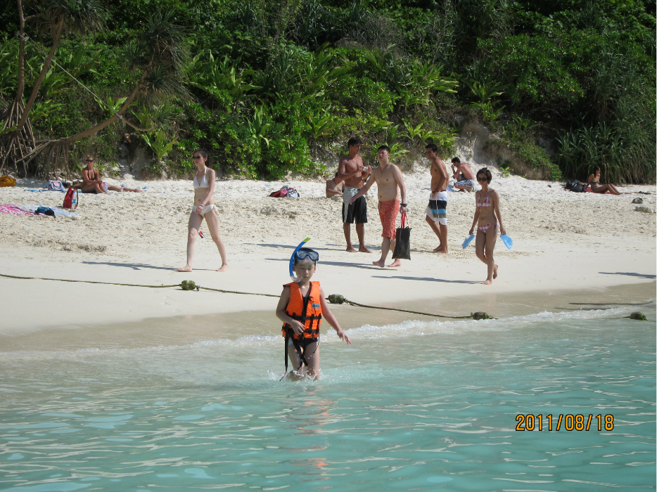 船老大非常好,见太阳要下山了,问我们要不要在船上看夕阳,不过大家都累了,就早些回去了。这让我对泰国 的人更有好感了,在巴东 的时候,当地人见了我们都会热情的打招呼,和儿子对话,结果就是儿子说一定要学好英语,不然就像个哑巴。