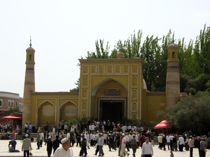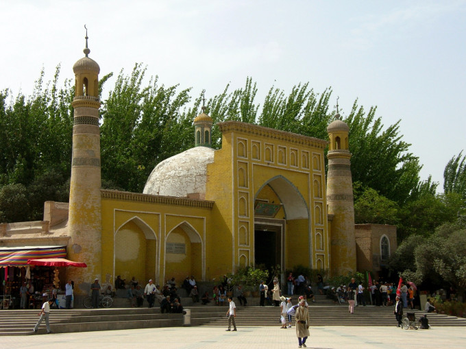 艾提尕尔清真寺是目前中国最大的一座清真寺,位于喀什市市中心,于公元1442年建造。