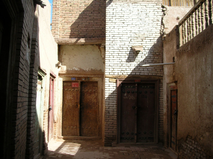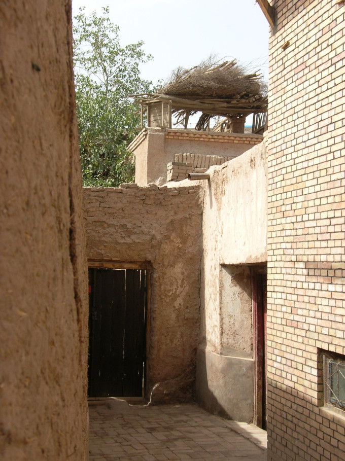 老城里的房屋,一家挨着一家,是以艾提尕尔清真寺为中心向外放射性的扩展,肩挨肩,背靠背,大多是两层结构,也有三层和多层的小楼。
