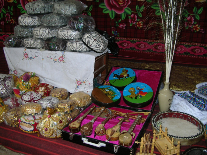 老城里很多手工艺品店。手鼓、花帽、热瓦普琴,都很有特色。