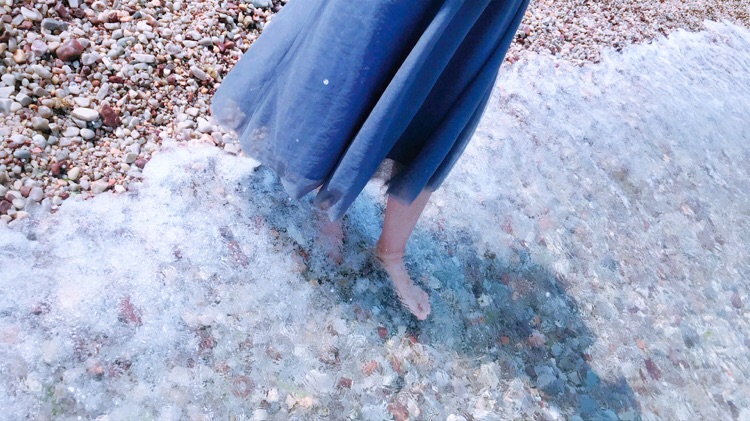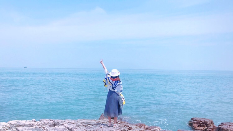 九丈崖的海水很清,都是大大小小的鹅卵石,踩起来有些硌脚,但也挺有意思,拍照依然是我们的必备项目。
