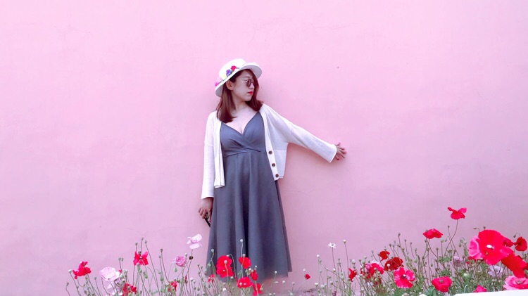 花沟村委会的粉墙也成为我们臭美的背景。