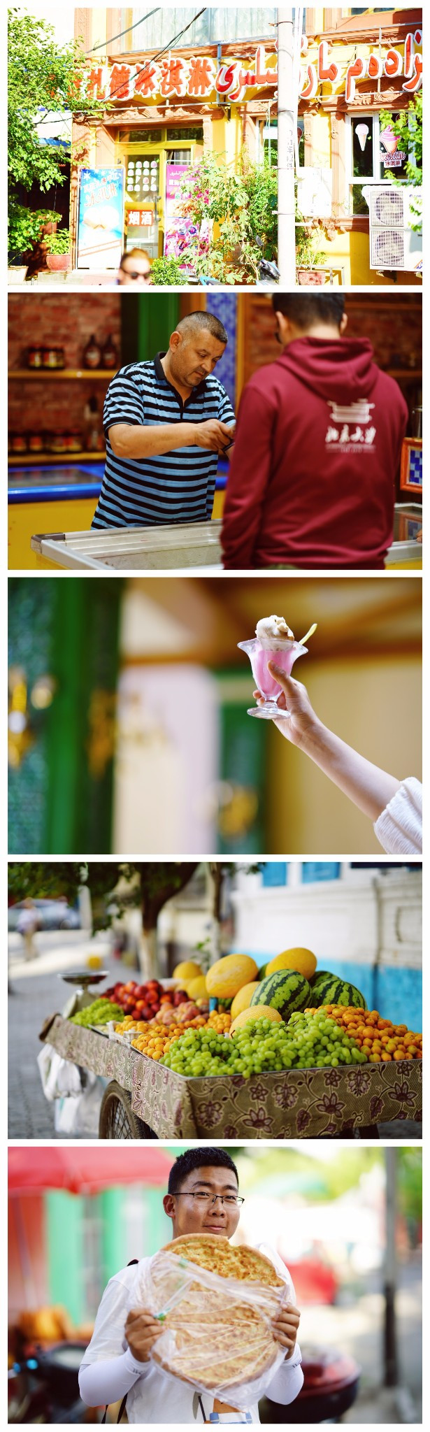 路上遇见4名北大高材生,一起游玩,一起吃冰淇淋和烤馕。烤馕趁热吃特别好吃,我们转了一圈后回来,这么多烤馕都卖完了!冰淇淋3个球只需要8块钱,良心价!