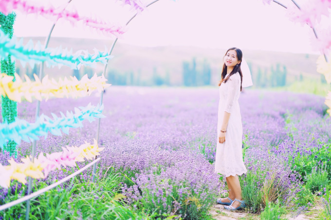 伊犁、法国普罗旺斯、日本北海道是世界三大薰衣草产区,每到夏季,浅紫色的花开遍田野,如梦如幻,我带了一套轻婚纱,和胡先生一起沉醉花田。