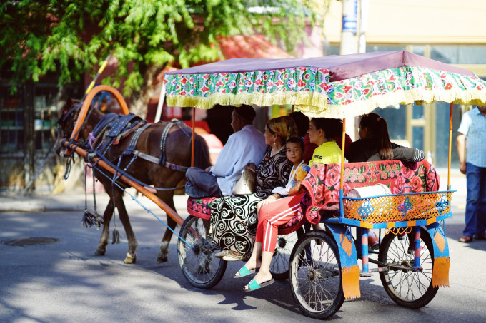 喀赞其是维吾尔族住宅区,是一个充满浓郁新疆味道的伊宁老城,这里还保留着传统古老的民居建筑和原汁原味的维吾尔族生活方式。疾驰而过的‘马的’,放学路上嬉笑的孩童,坐在门口乘凉的老人,他们都有着最美的微笑,和最热情的心。这里的民居很漂亮,维族同胞邀请我们去家里参观,一起拍照留念。