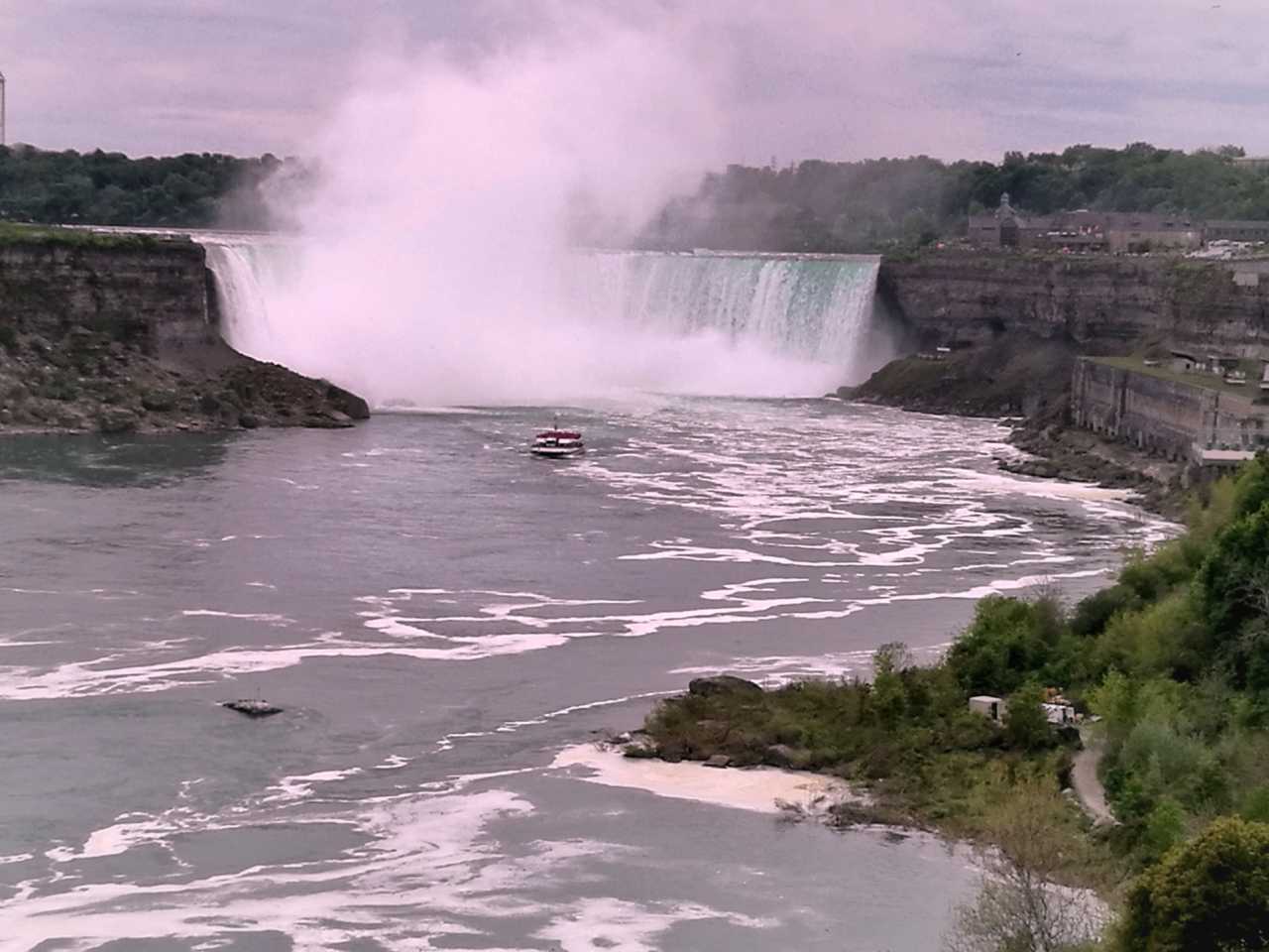 十八年前的冬季,俺曾经在加国观赏过冰雪覆盖下的尼亚加拉瀑布。十年前春季的一个夜晚,俺也曾在美国水牛城看过尼亚加拉河对岸城市的夜景。今天,再次来到尼亚加拉河畔,初夏的大瀑布为我们展示了它的多姿多彩。