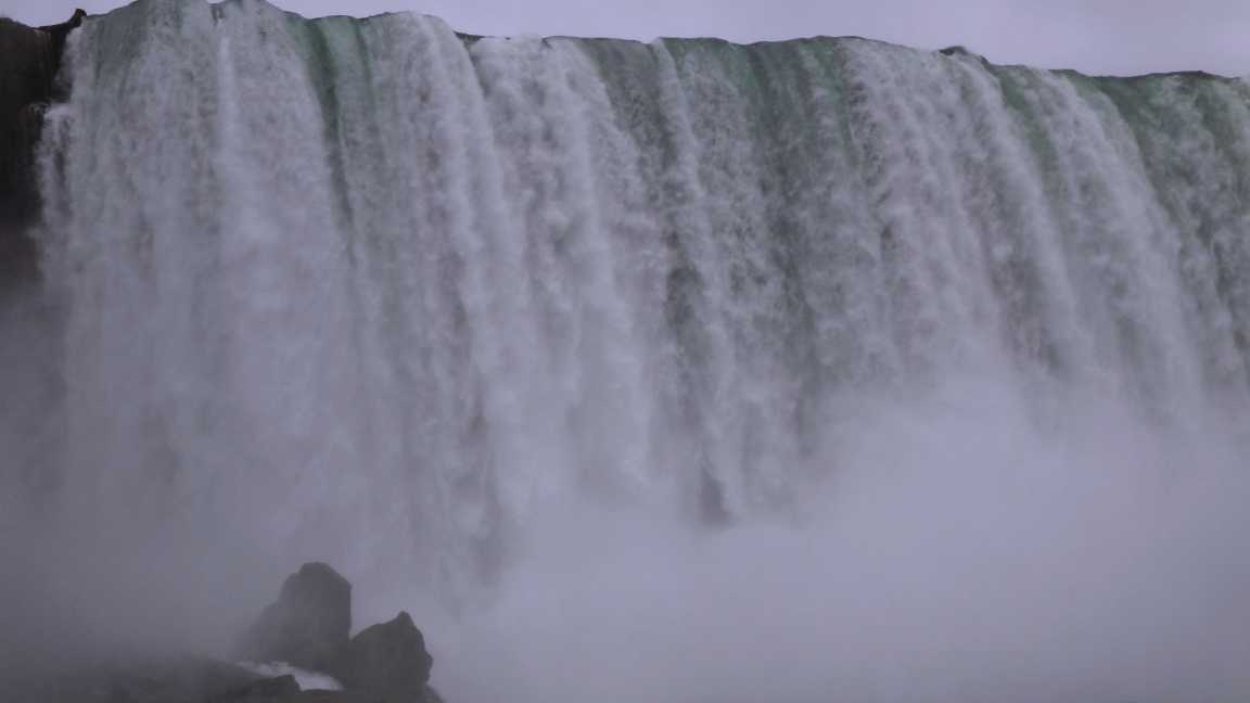 美国的纽约州与加拿大的安大略省之间隔着一条尼亚加拉河。尼亚加拉河的水流冲下悬崖至下游重新汇合,在不足2公里长的河段里以每小时35.4公里的速度跌宕而下15.8米的落差,演绎出世界上最狂野的漩涡急流,经过左岸加拿大的昆斯顿、右岸美国的利维斯顿,冲过“魔鬼洞急流”,沿着最后的“利维斯顿支流峡谷”由西向东进入安大略湖。一举形成举世闻名的跨国大瀑布——尼亚加拉瀑布。