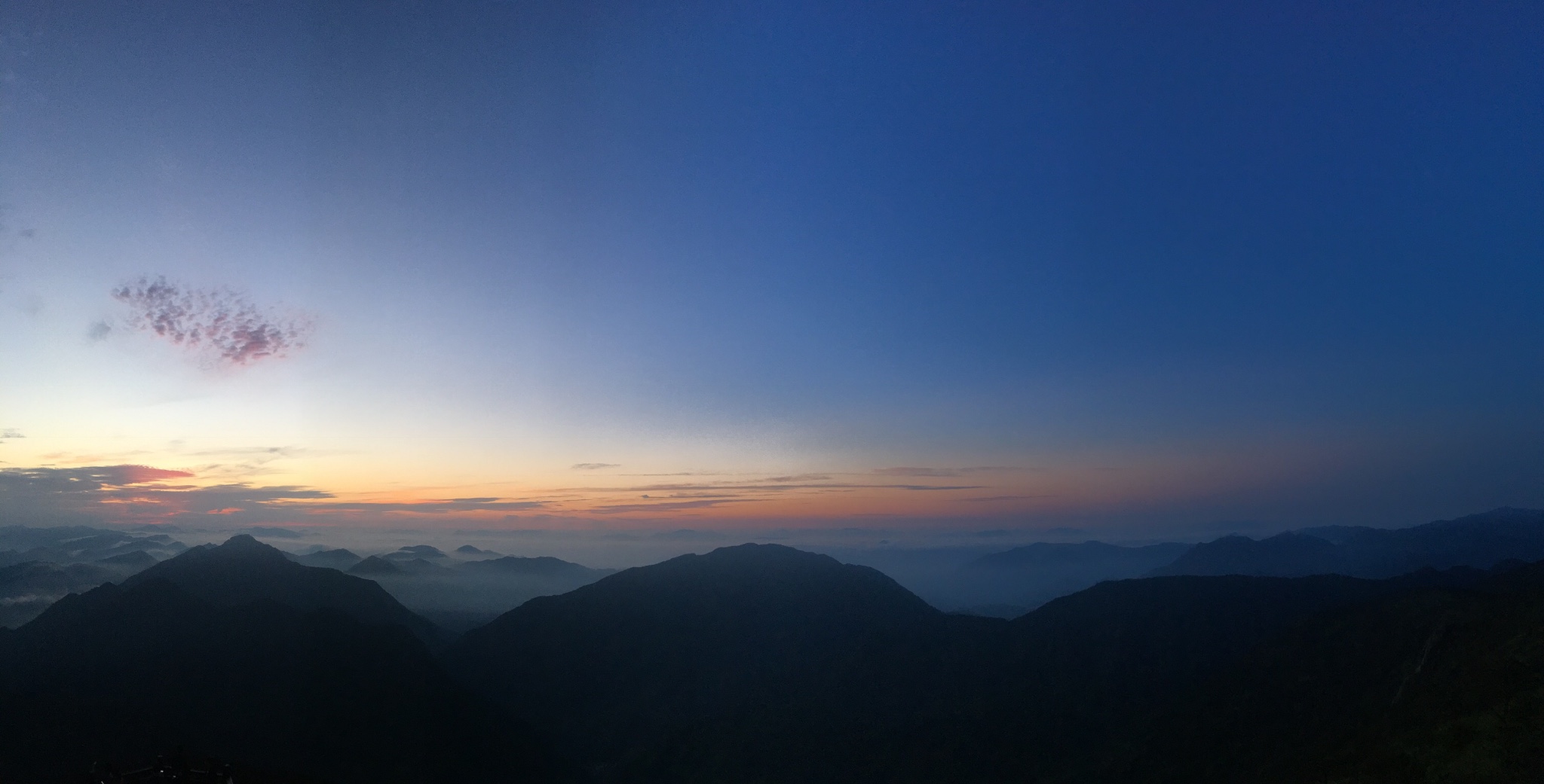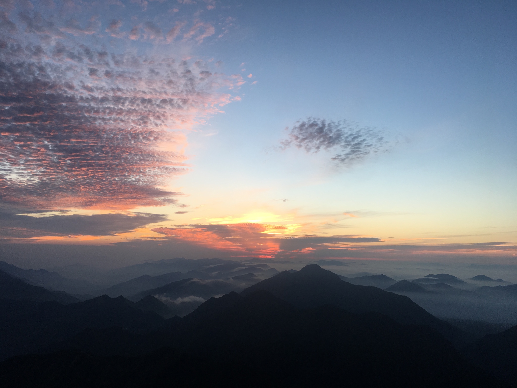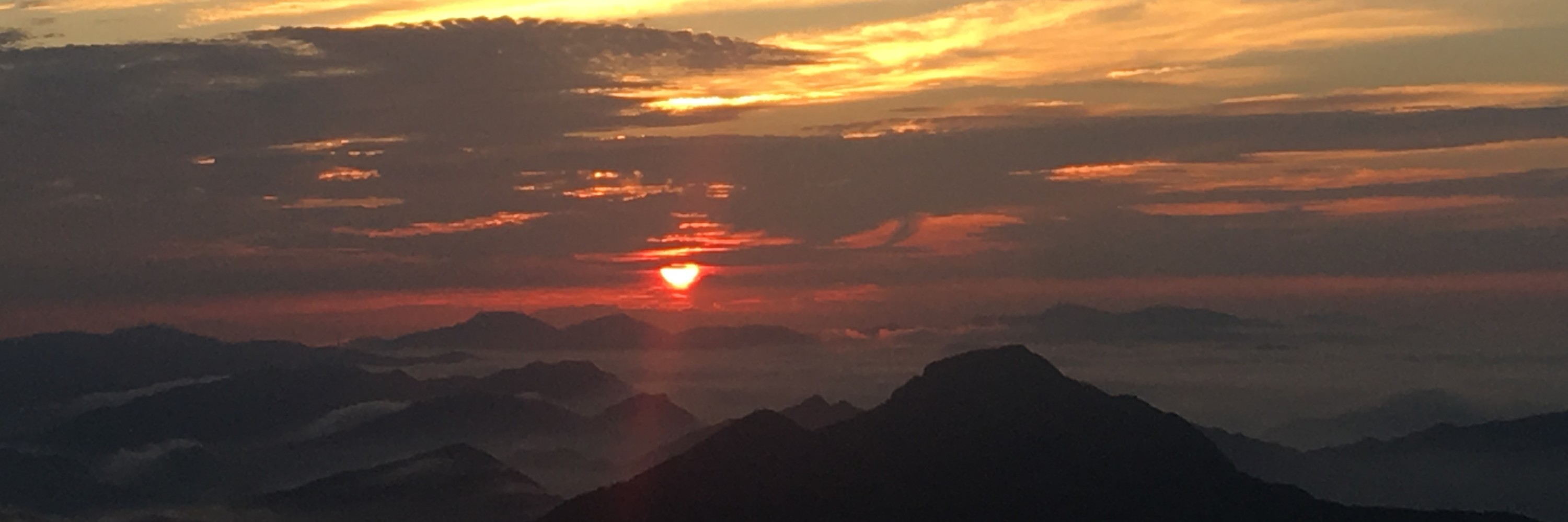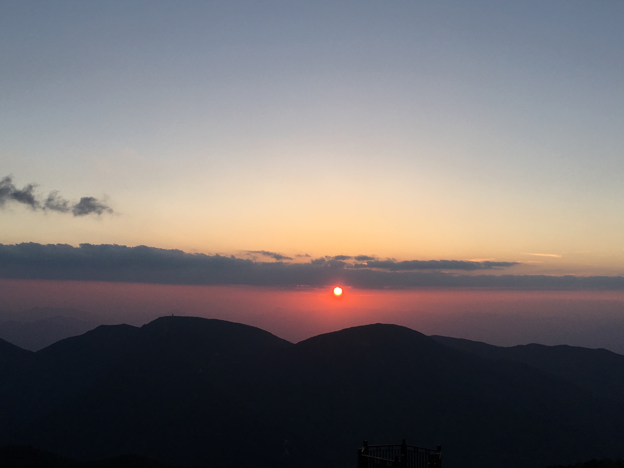自己也赶紧起来穿好衣服,去看日出,日出时间 5:06,看到有云海,还是很开心的
