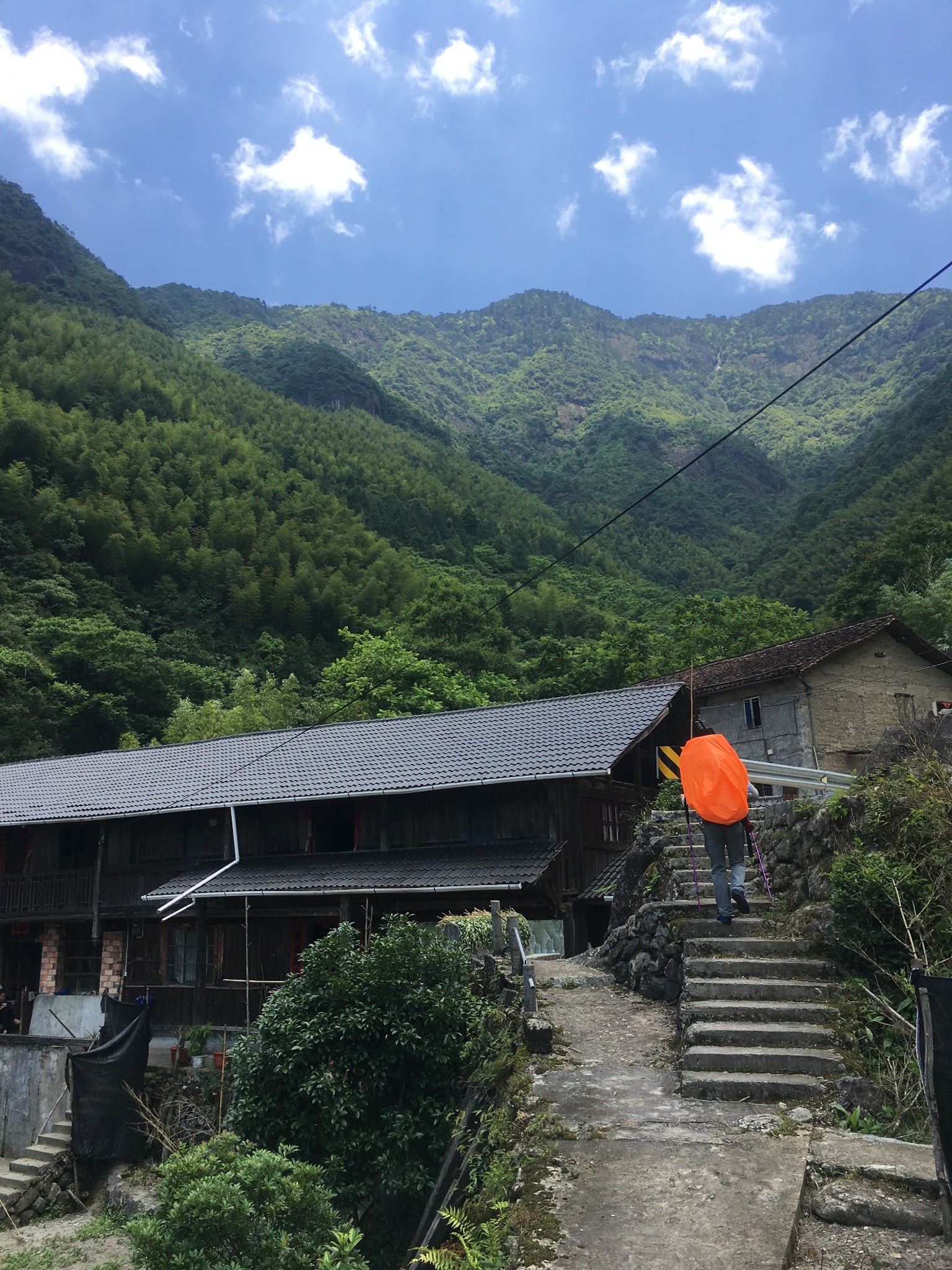 告别小项,离开猎户山庄,走了大概不到半小时,就来到黄茅尖山脚下,恐怖的4000多级台阶爬山路开始