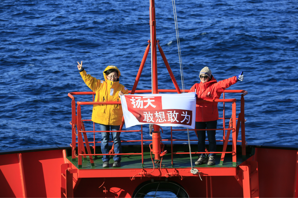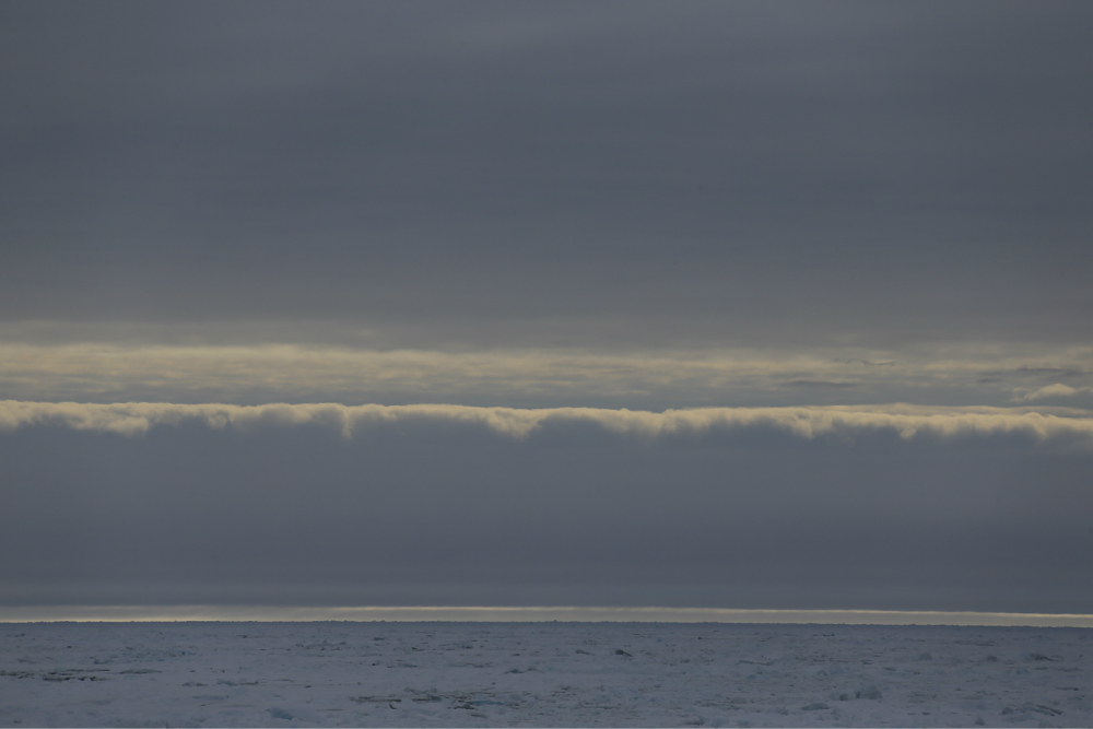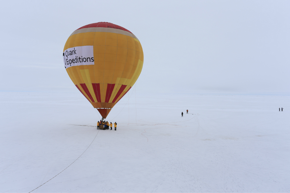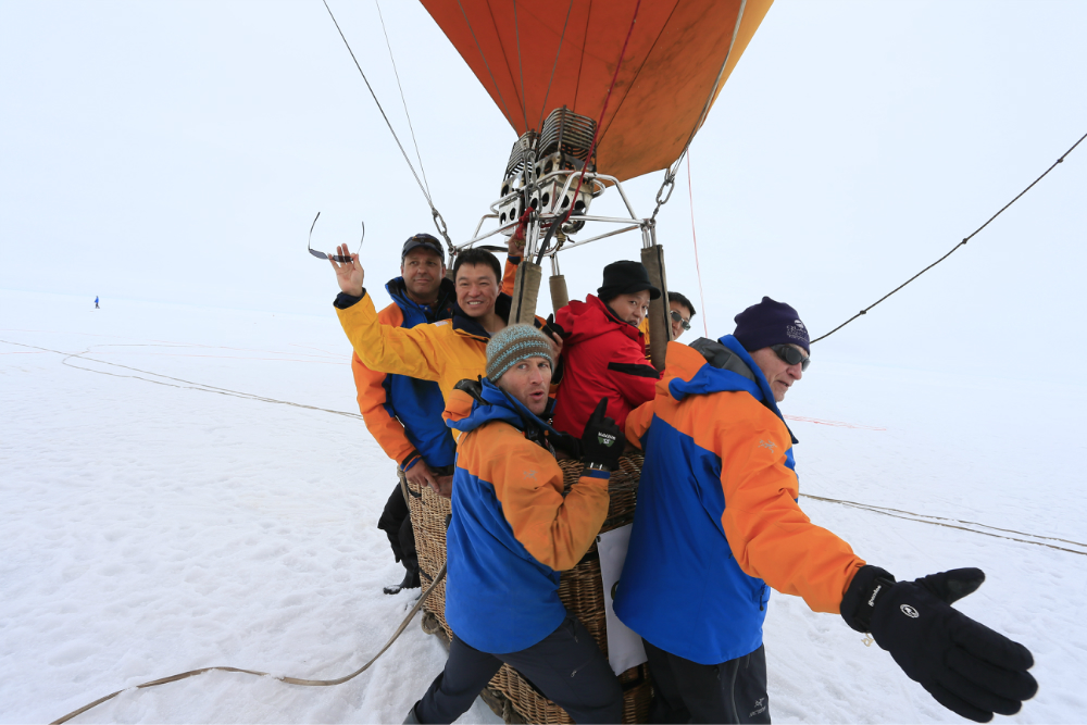 我们本来是想在北极 点升热气球的,但是北极 点风太大就放弃了。船又向前开了七八个小时,我们到达了另外一个点,一个风速较小的地方,所有人都下船把热气球升上去了。也就是在那一刻,我才发现,原来一天中所有的天气都是一样的,太阳一直在一个固定的位置,从早到晚,始终如一。