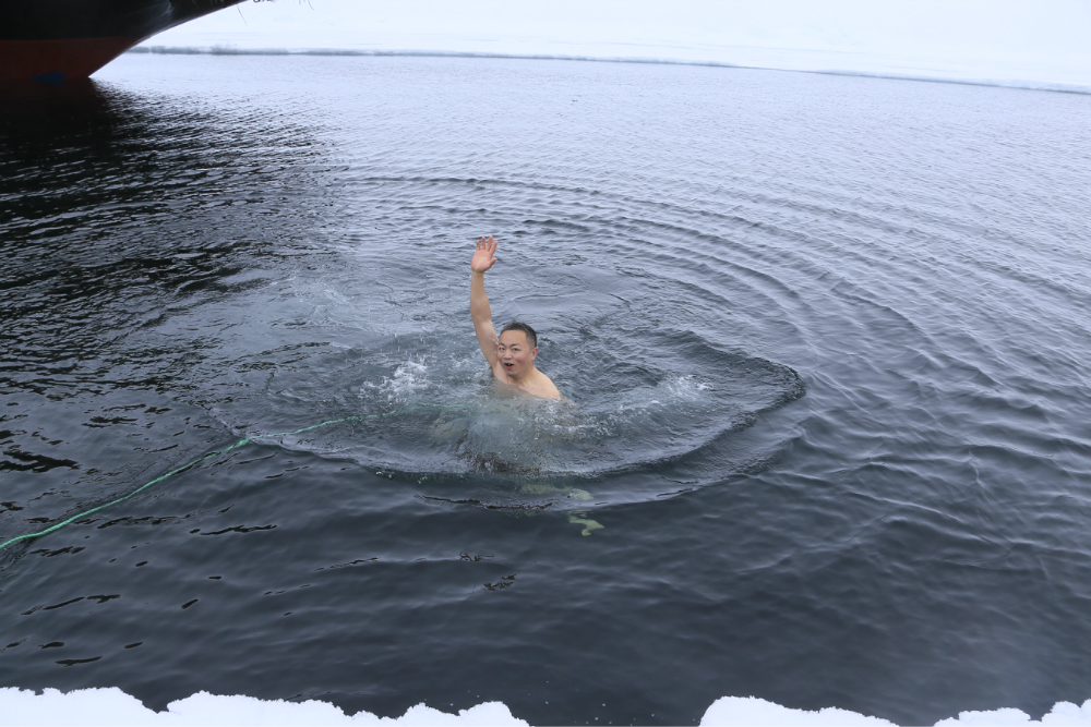 船长告诉我们一般人比较危险的是三分钟,三分钟之内最好上来,如果超过三分钟身体可能会失温。这次冬泳还给我颁发了一个证书,加上到达北极 点的证书,这次北极 之行一共收到了2份证书。