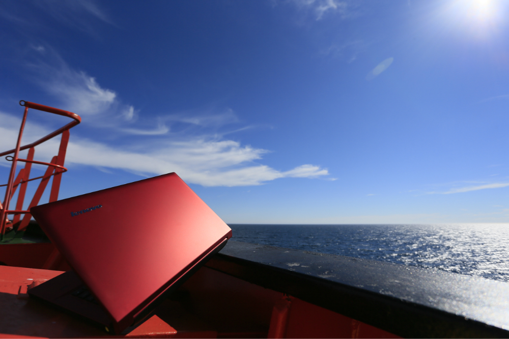 还有一件特别有意思的事情。我们拿着笔记本拍照片,船上的外国人看到之后觉得挺好玩的,主动要求拿着笔记本摆各种姿势拍照片,特别逗乐。