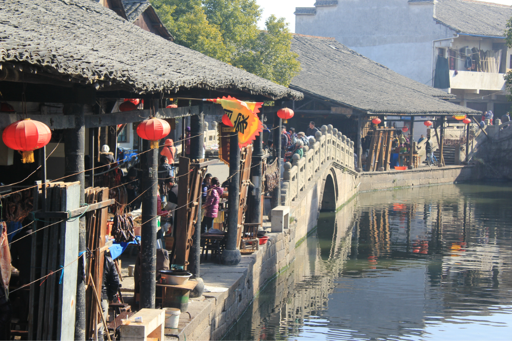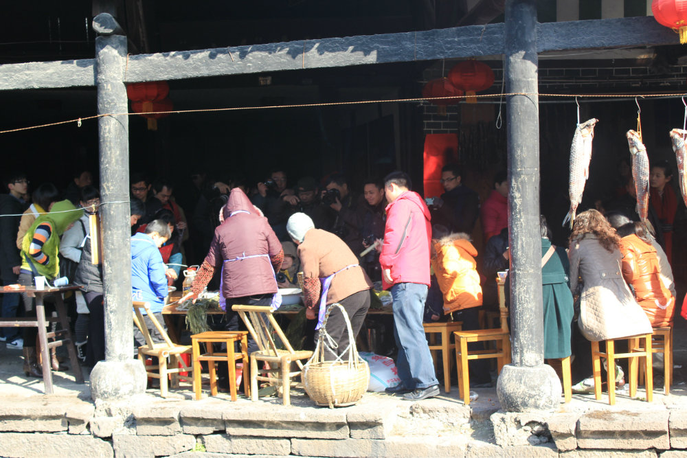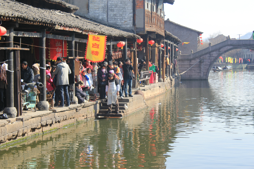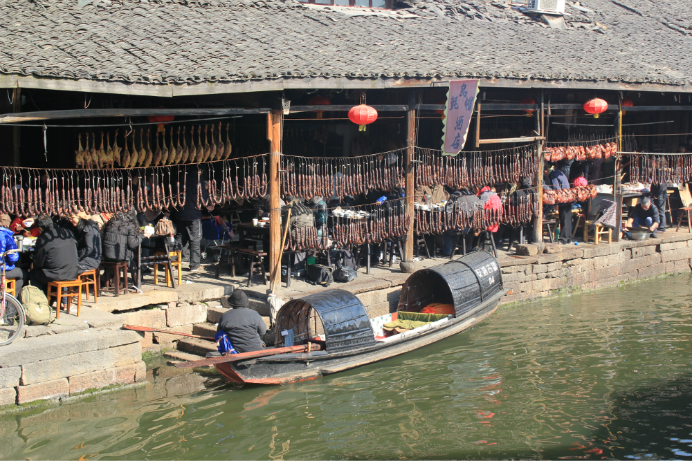 古镇酒家把小长桌小长凳放在河边,挑几样特色的小菜,如梅干菜烧肉、酱爆螺蛳、炒鞭笋,腊肠和绍兴臭豆腐是不会少的。。。
