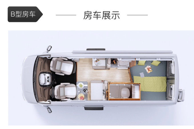 B型房车和C型房车主要的区别在于,C型房车更注重居住空间及增加房车的宽高,储物空间及蓄水能力优于B型房车,适合4-5人大家庭的长途旅行。