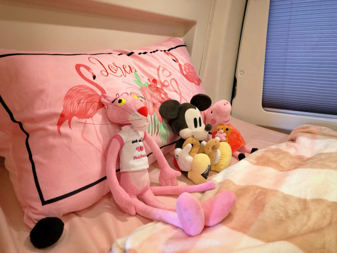 用自己携带的床单、毛毯、枕头、娃娃等给卧室粉饰成粉粉嫩嫩,准备启程出发喽!Let’s go!