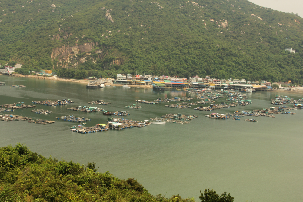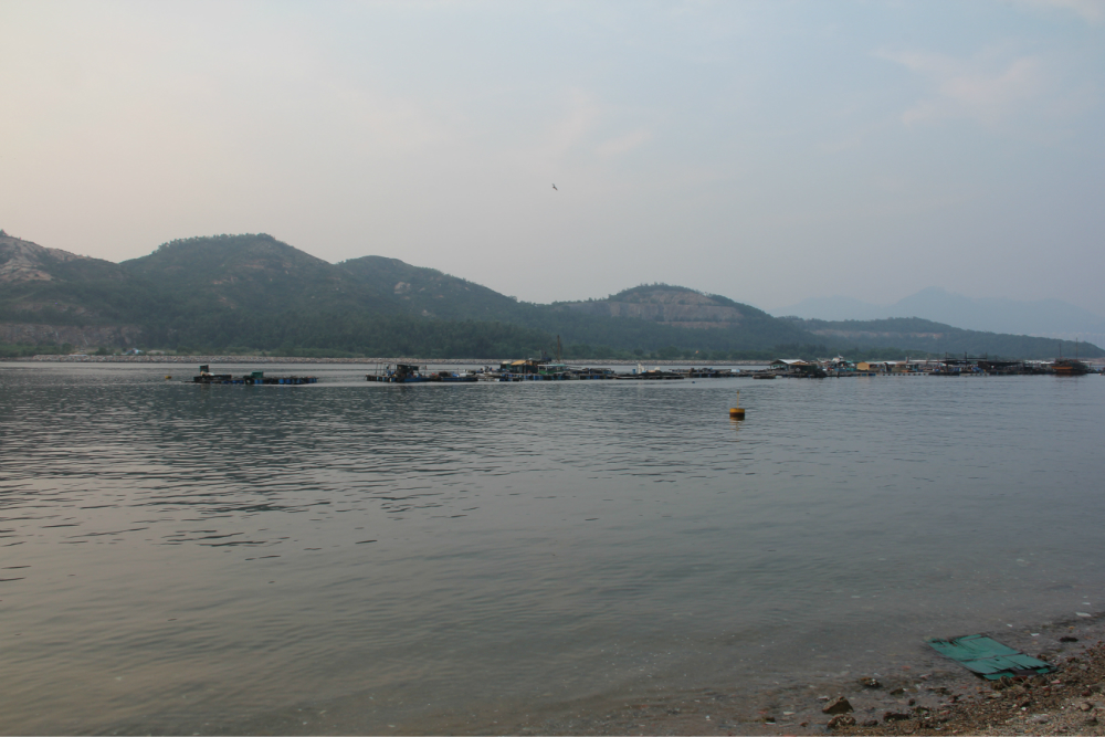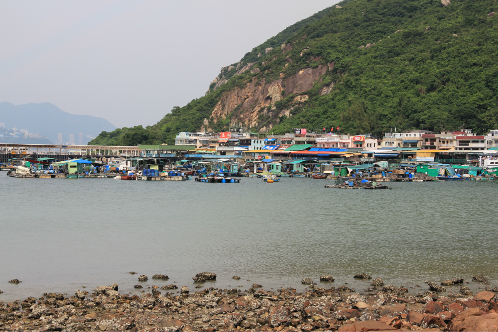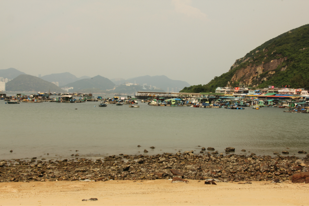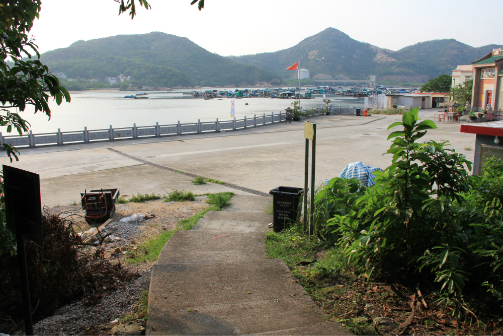 走了一段之后我可以远远看到海面上一排排漂浮的木排,结合地图推测哪里可能就是索罟灣(后来发现那其实不是的)。我心里多少感觉有了一点希望,即使看上去要走大约两三公里的样子但最起码可以看到了。