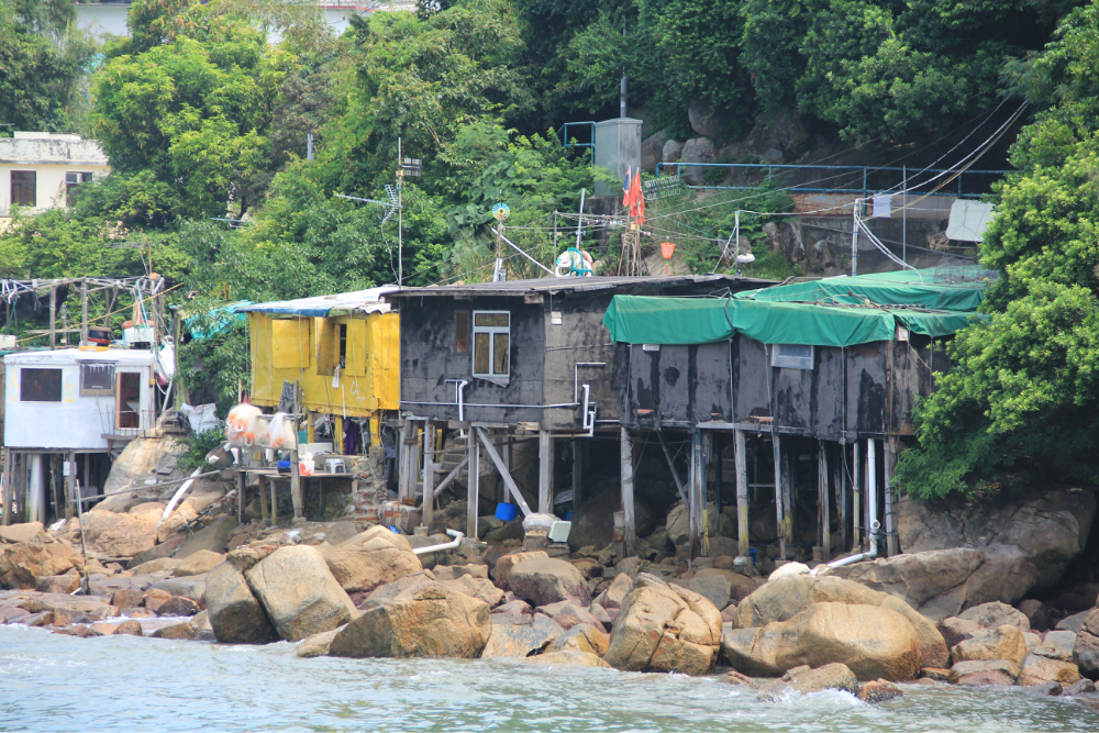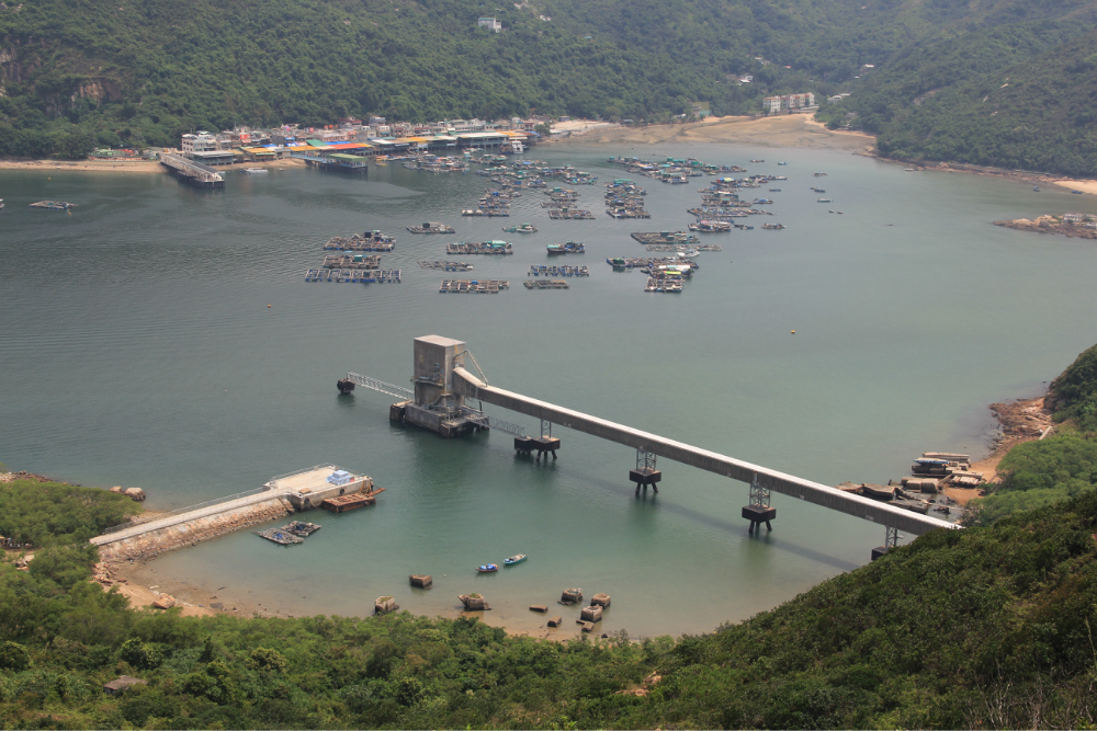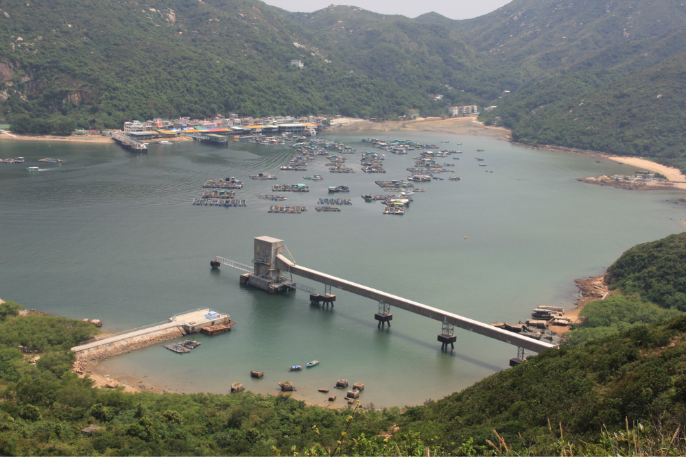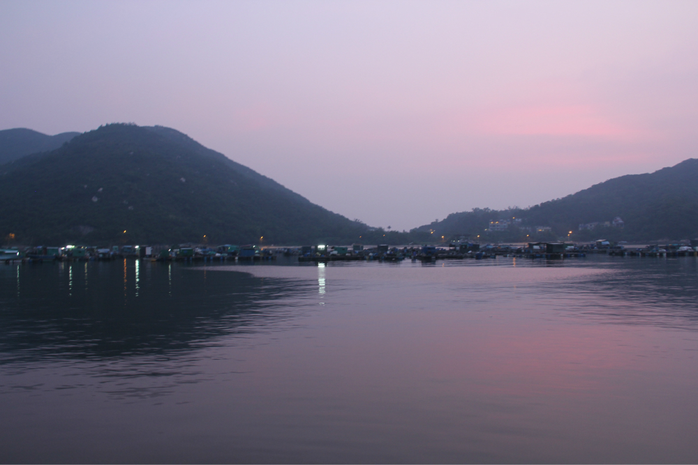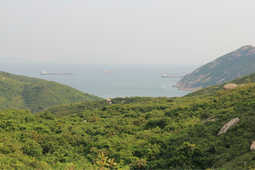 走了一段之后我可以远远看到海面上一排排漂浮的木排,结合地图推测哪里可能就是索罟灣(后来发现那其实不是的)。我心里多少感觉有了一点希望,即使看上去要走大约两三公里的样子但最起码可以看到了。